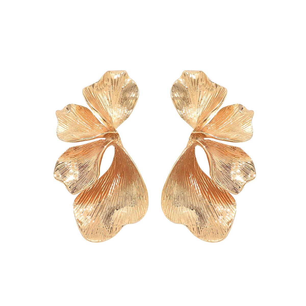 Aretes de Flores para Mujer de Estilo Simple Europeo y Americano, Aretes de Tuerca de Aleación Nicho Multicapa de Estilo Metálico Exagerado Único al por Mayor