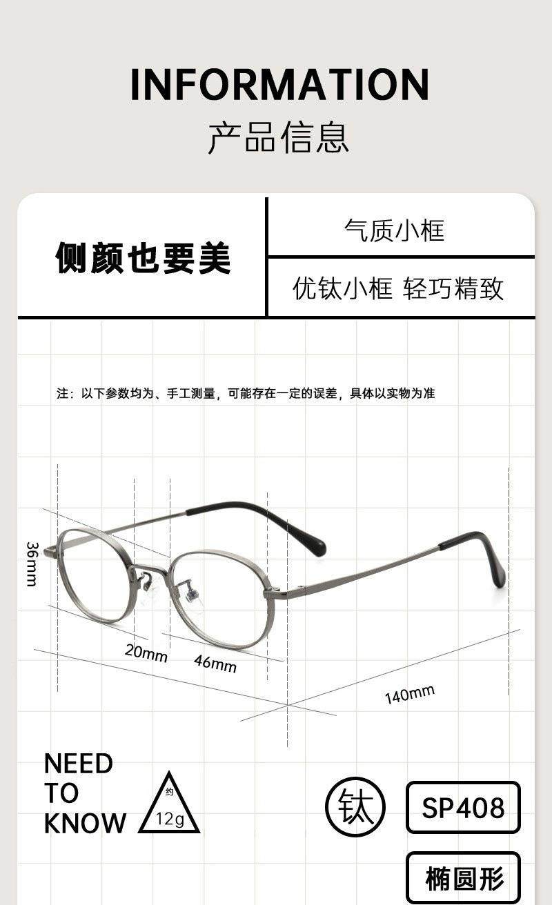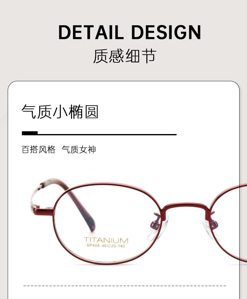 Armazón de Lentes Ovalado Retro de Marco Pequeño para Mujer Ultraligero Semicircular de Titanio Altura Miopía Armazón 408 Lentes Literarios Sencillos
