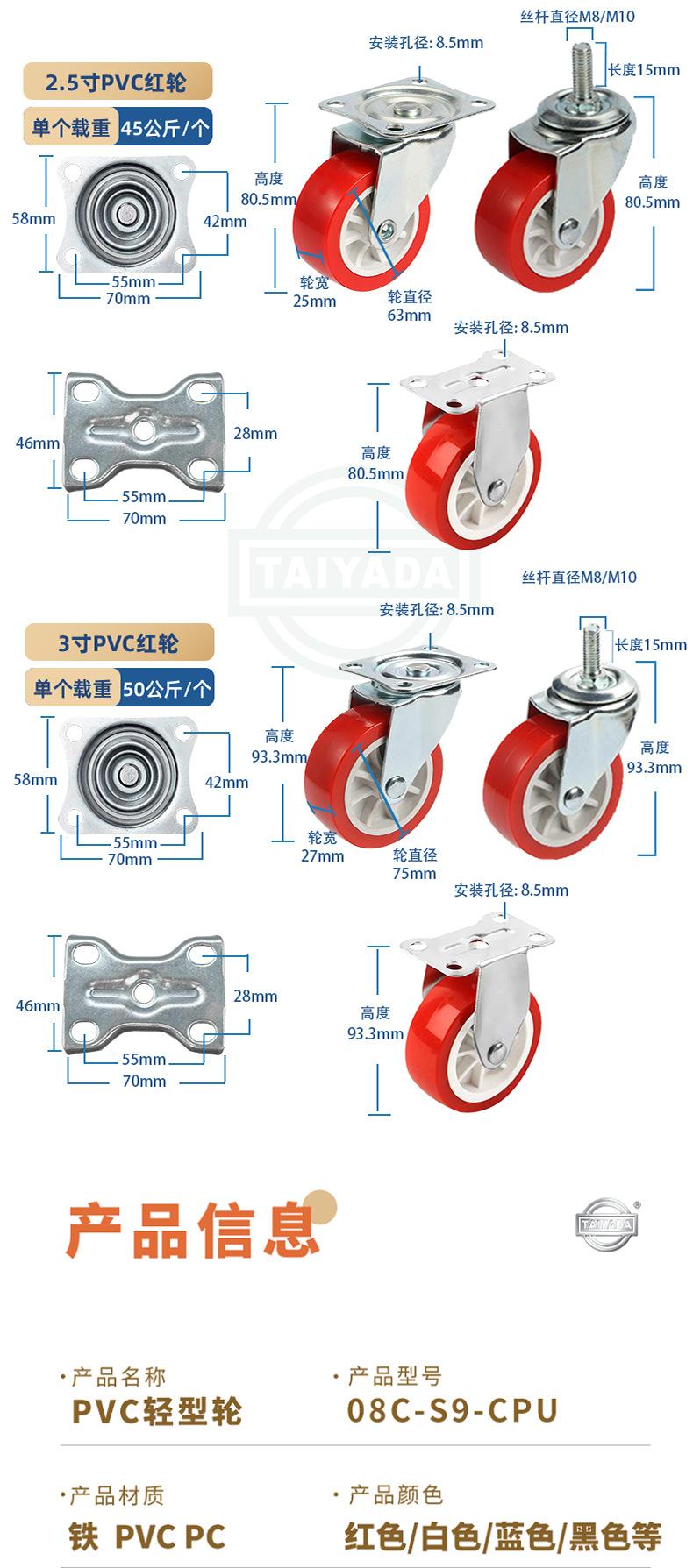 Fabricante de Ruedas 2.5 pulgadas 3 pulgadas Ruedas para Muebles Silenciosas Vástago Roscado Ruedas Universales Ruedas Universales con Freno Soporte Lateral Ruedas para Cajones