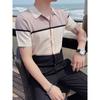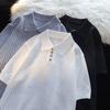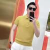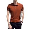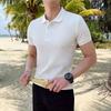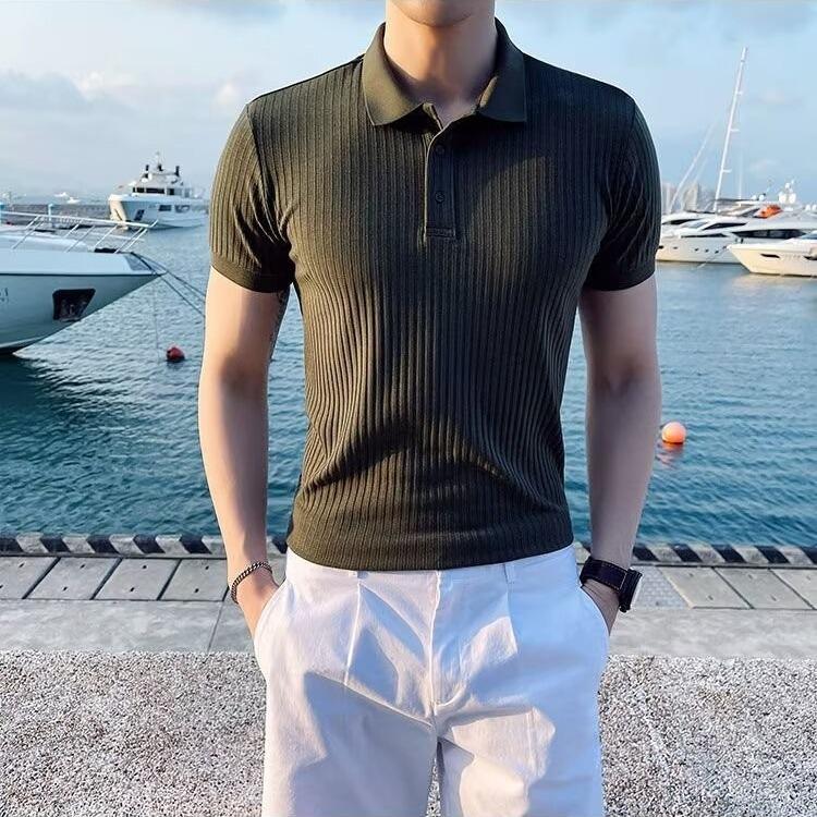Camiseta de verano transfronteriza de punto a rayas de seda helada, polo de manga corta con solapa para hombre, top fino de media manga para hombre