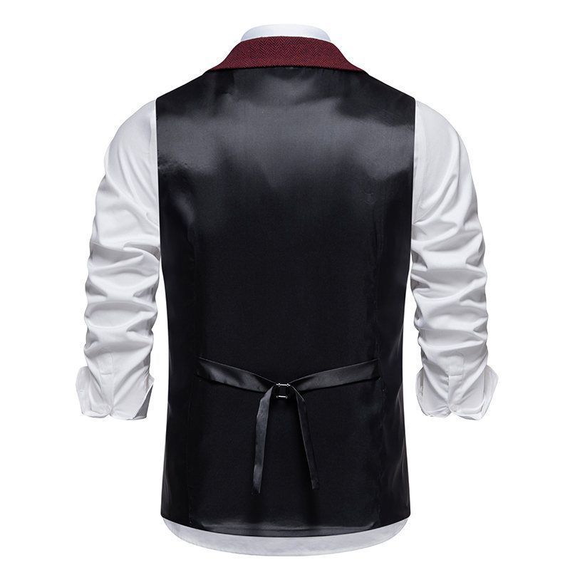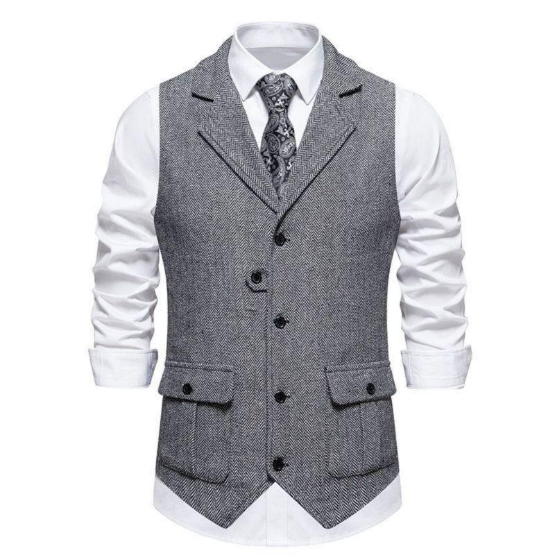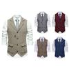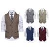 Chaleco de traje de espiga para hombre, talla europea, otoño e invierno 2024, estilo vintage, con bolsillo grande y personalidad, de un solo pecho