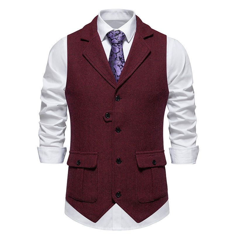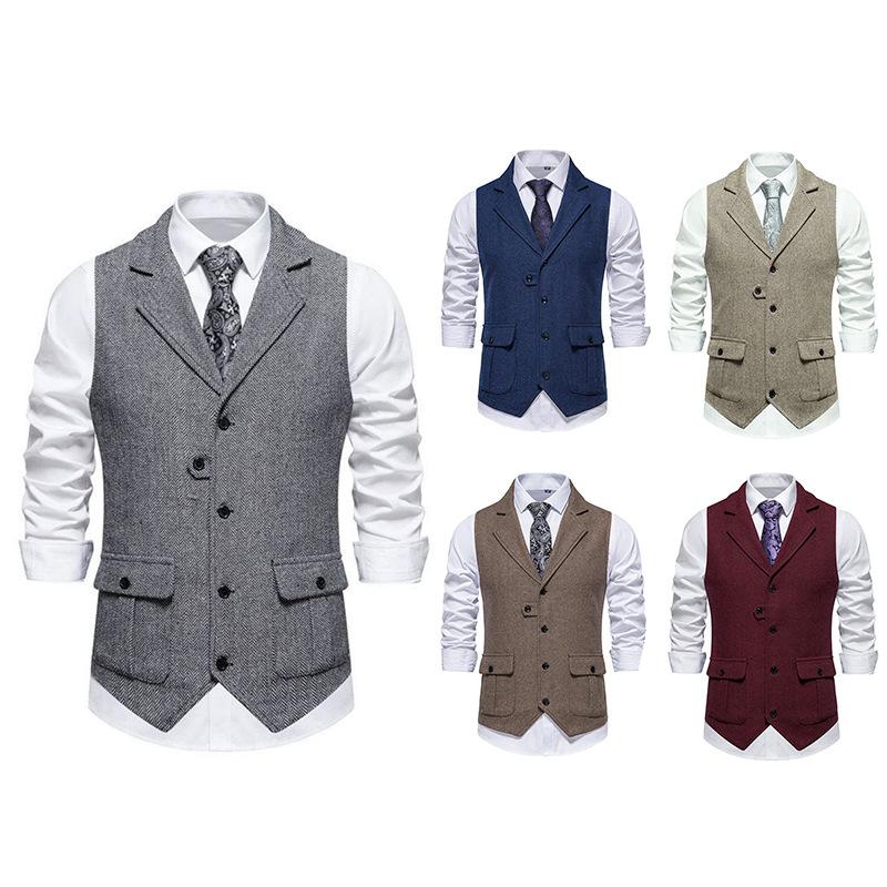 Compra Chaleco de traje de espiga para hombre, talla europea, otoño e invierno 2024, estilo vintage, con bolsillo grande y personalidad, de un solo pecho al por mayor en Joom.pro