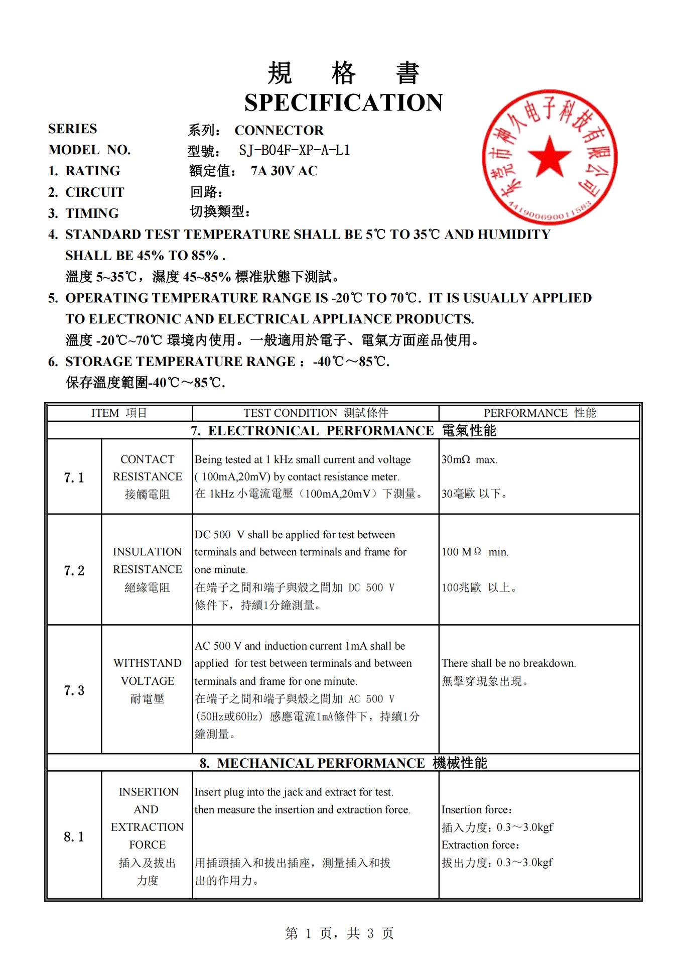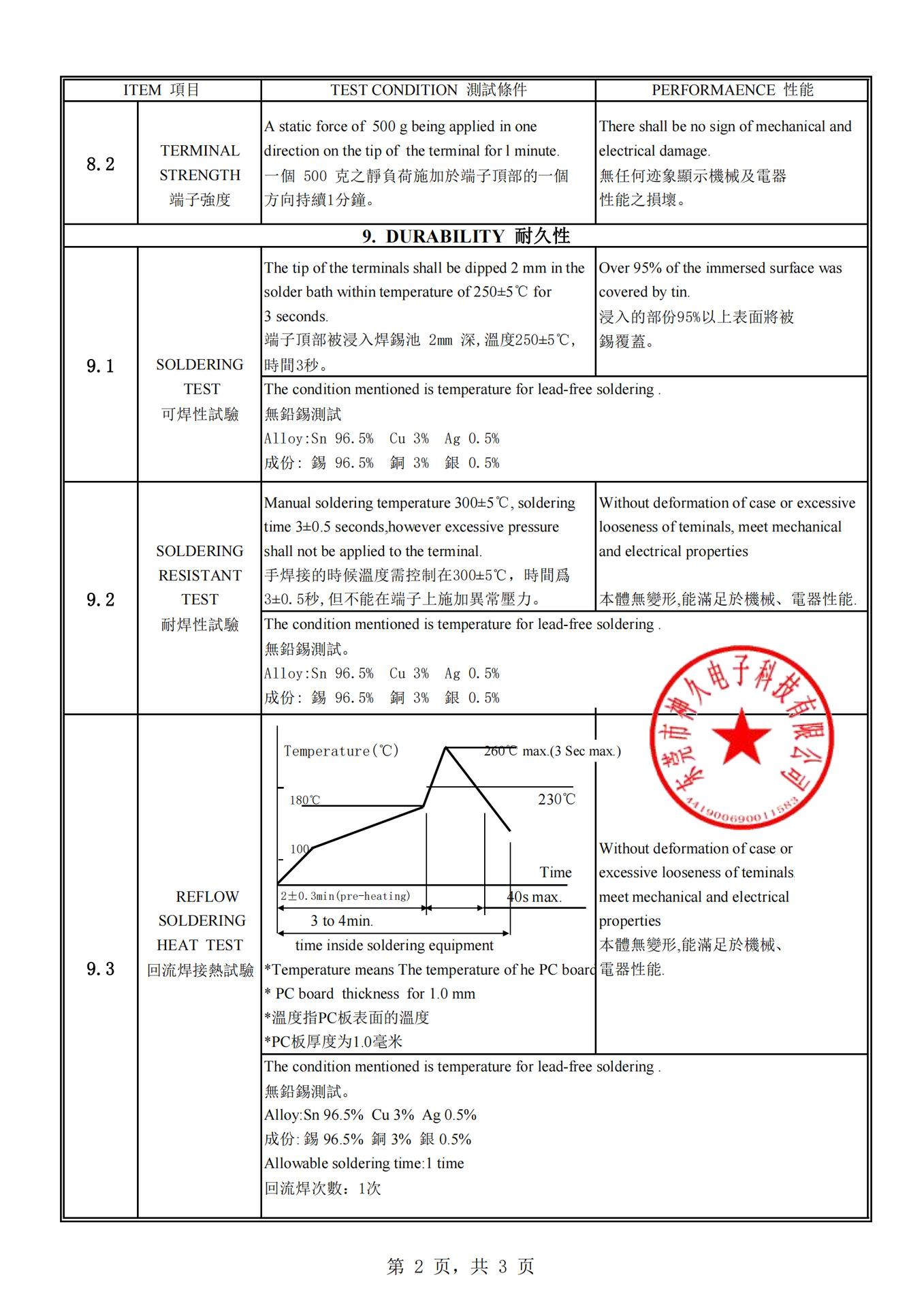 **Especificaciones de la prueba de impedancia de contacto de confiabilidad: Prueba Ri≤20mΩ: sin dañar la película vaporizada en la superficie del terminal, la prueba se combina con el valor de resistencia de contacto entre los dos terminales para evaluar la estabilidad de transmisión de señal del terminal del conector. calificado.