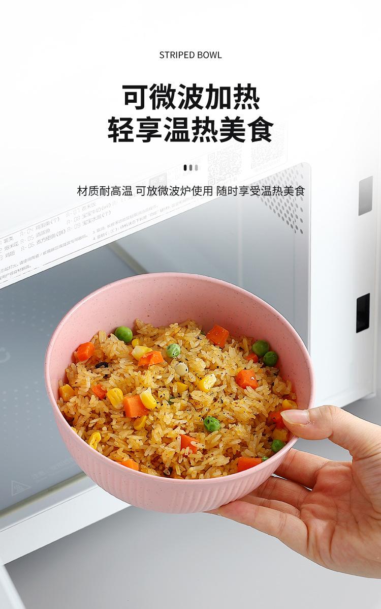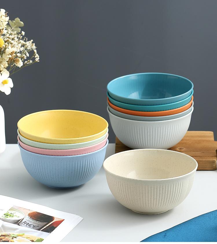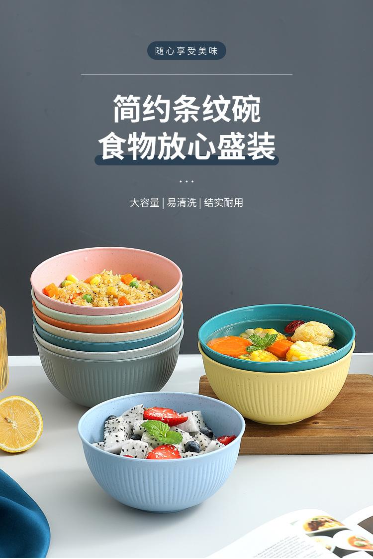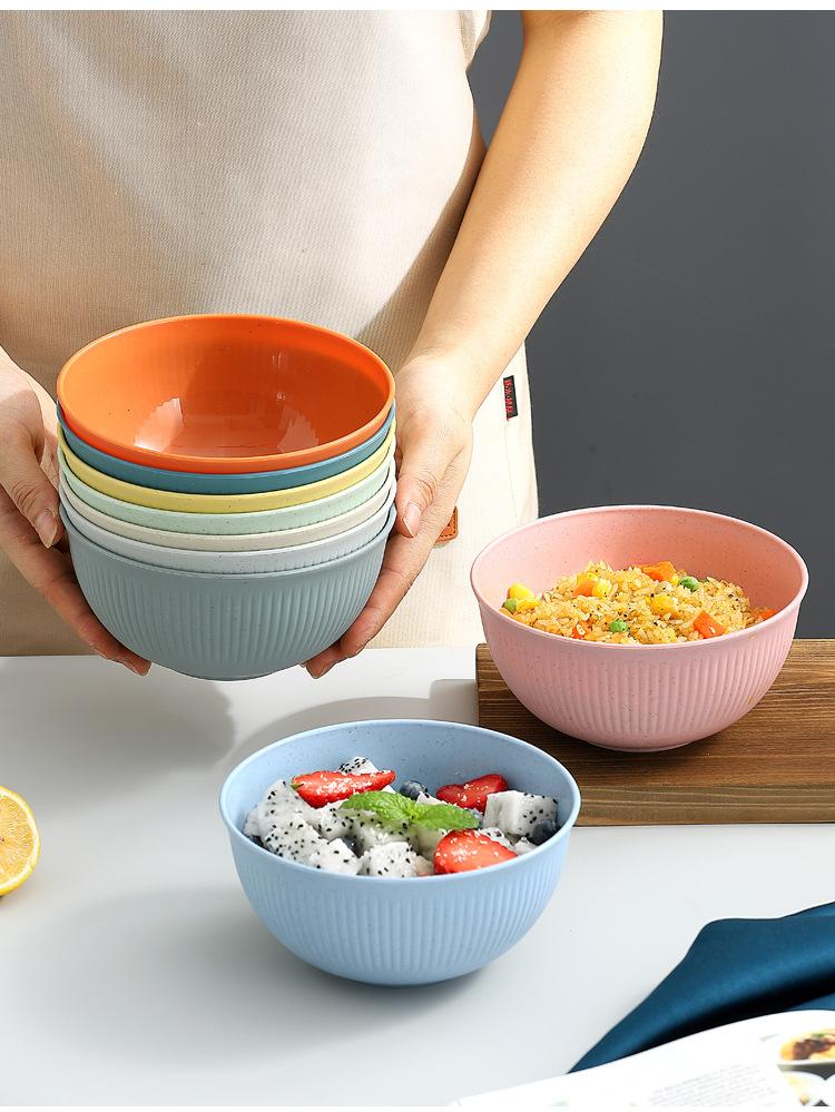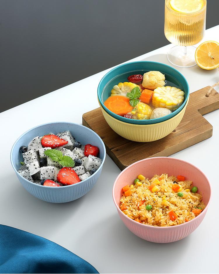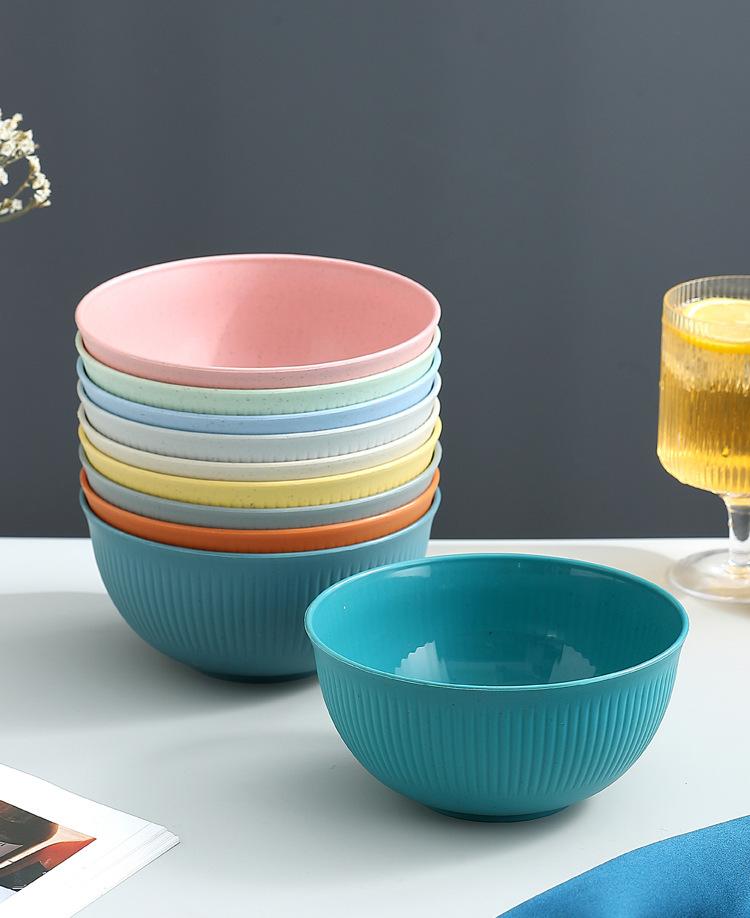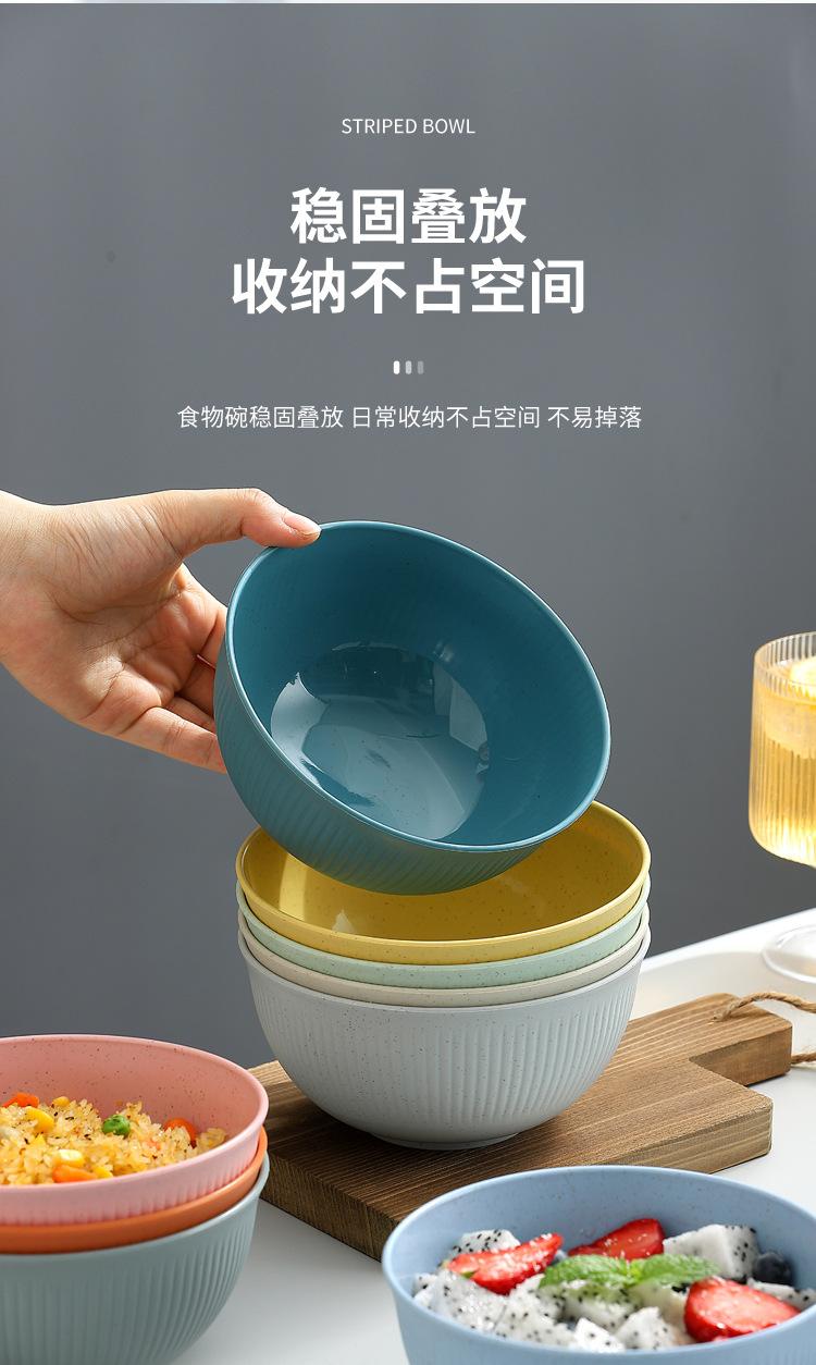 Cuenco de paja de trigo amazónica con patrón vertical, cuenco de arroz para sopa doméstica, cuenco de plástico para picnic y acampada, cuenco para ensalada, cuenco para fideos instantáneos