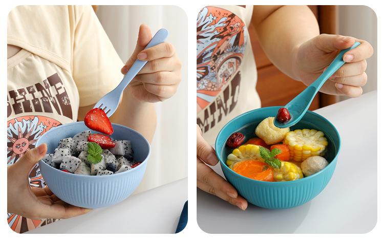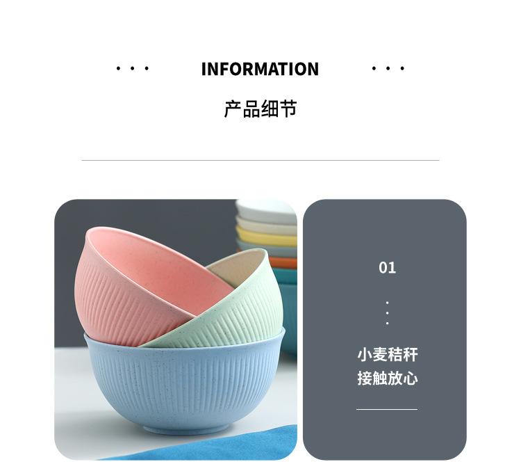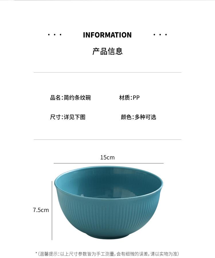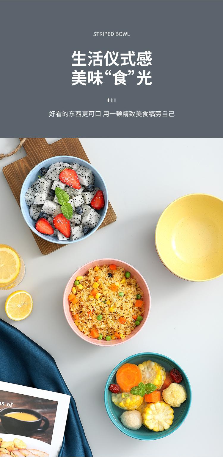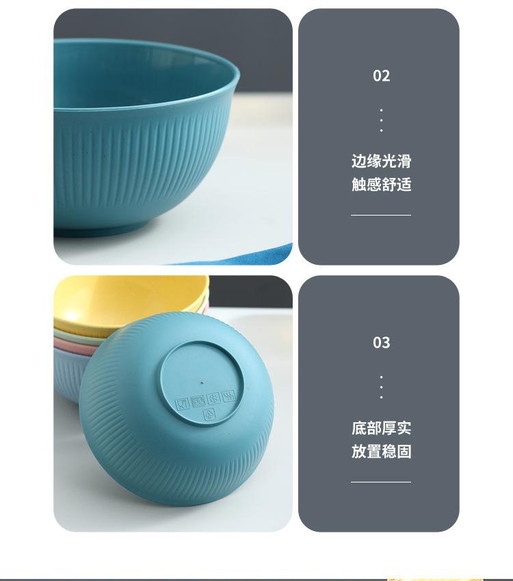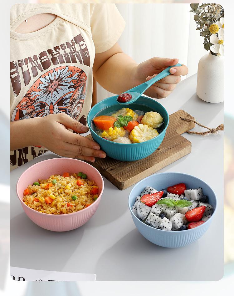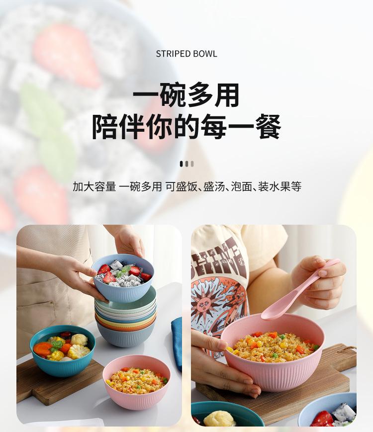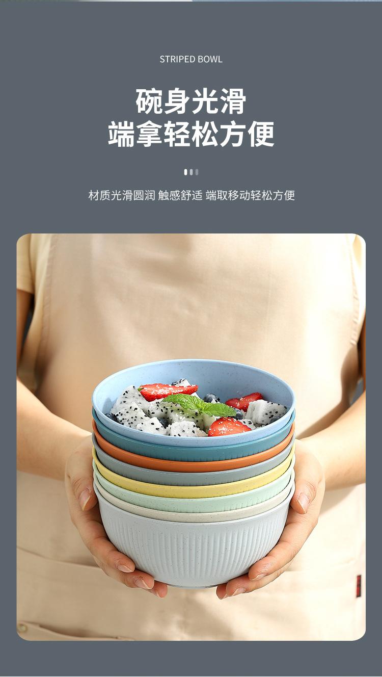 Cuenco de paja de trigo amazónica con patrón vertical, cuenco de arroz para sopa doméstica, cuenco de plástico para picnic y acampada, cuenco para ensalada, cuenco para fideos instantáneos