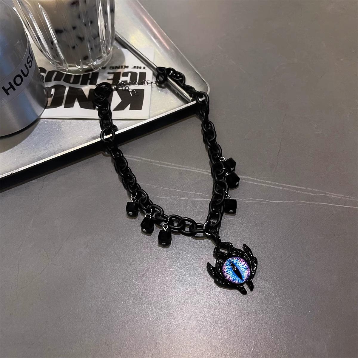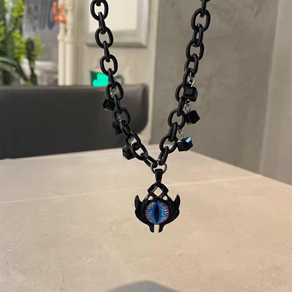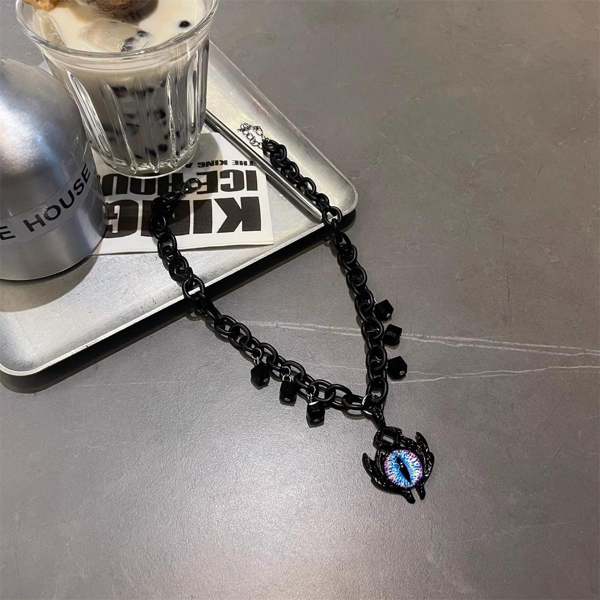 Collar con costuras de nicho de estilo oscuro con ojo de demonio de la industria pesada, cadena de clavícula de hip hop, collar masculino, diseño femenino para pareja
