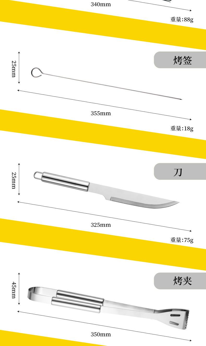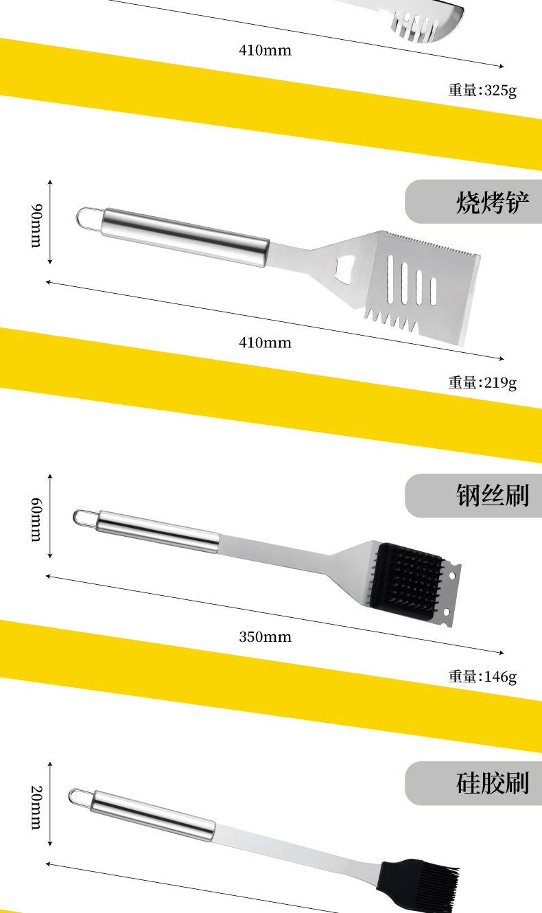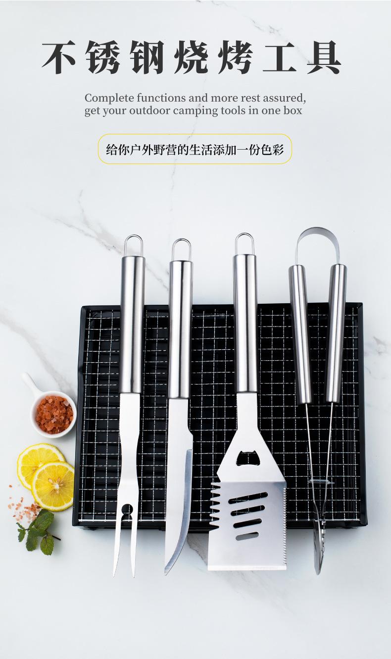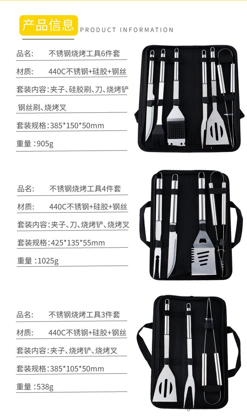 Herramientas para hornear de acero inoxidable, aptas para bolsa Oxford de Amazon, herramientas para barbacoa, barbacoa doméstica para exteriores, herramientas combinadas para barbacoa.