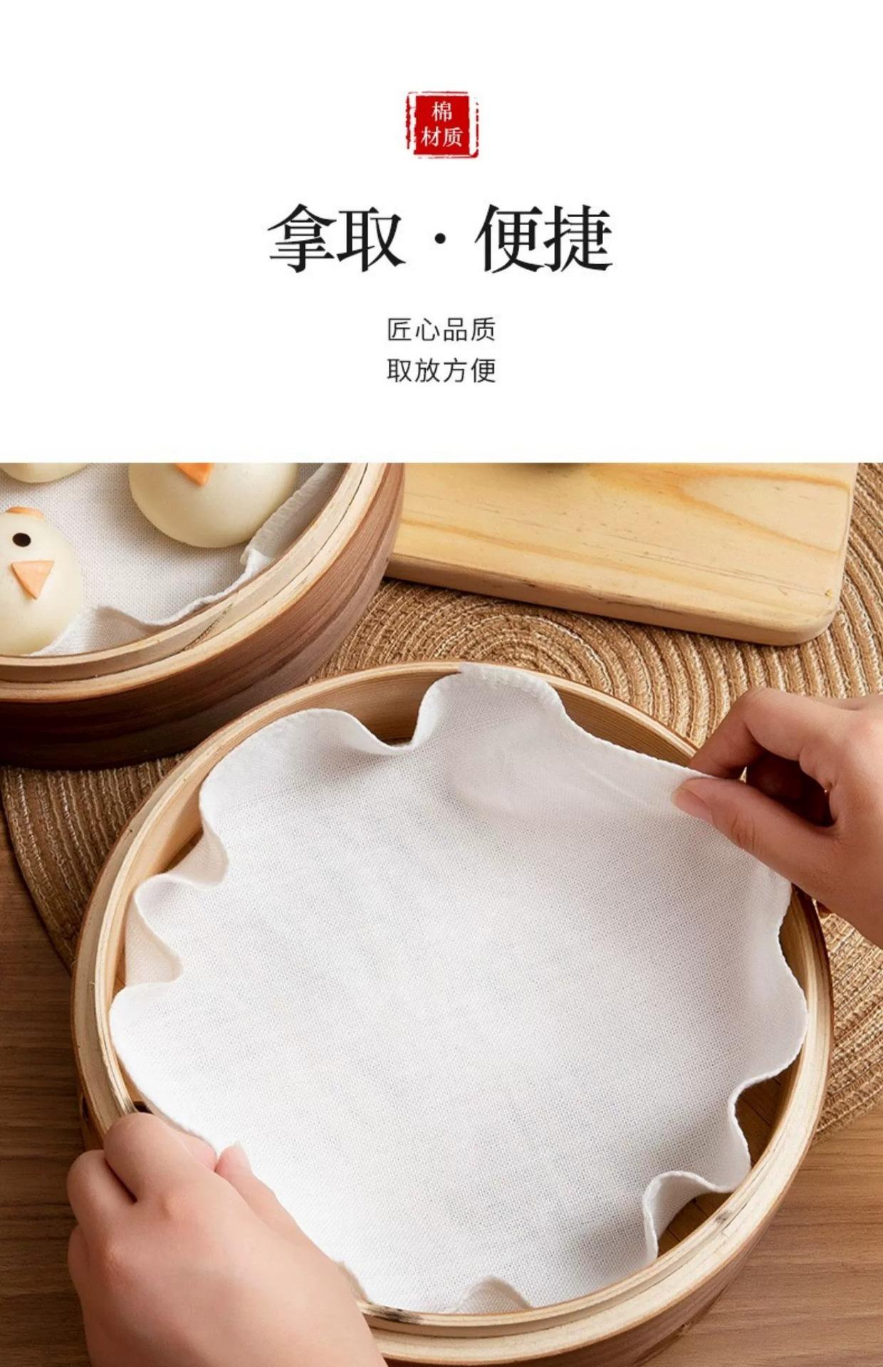 Tela para Vaporera Gasa de Algodón Puro Antiadherente para Hogar Alimentos al Vapor Tela Redonda para Vaporera Bollo al Vapor Arroz Paño para Vaporera Pan al Vapor Bollos al Vapor Almohadilla para Cesta de Vapor