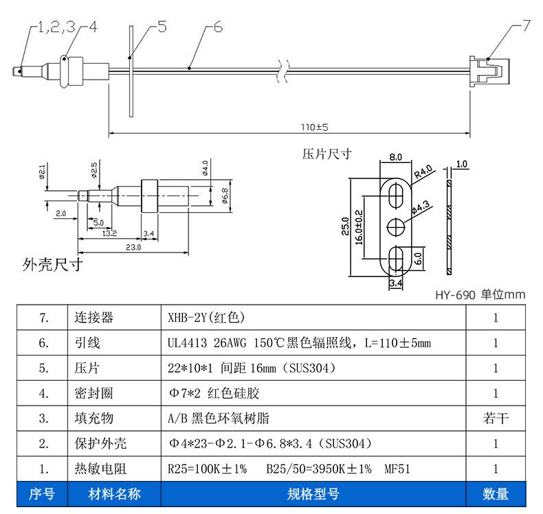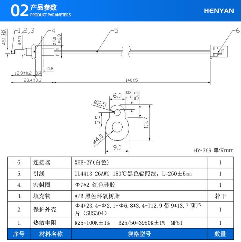 Elemento sensor de temperatura, sonda de cabeza de bala de acero inoxidable, dispensador de agua caliente de 100 K, purificador de agua, sensor de temperatura NTC