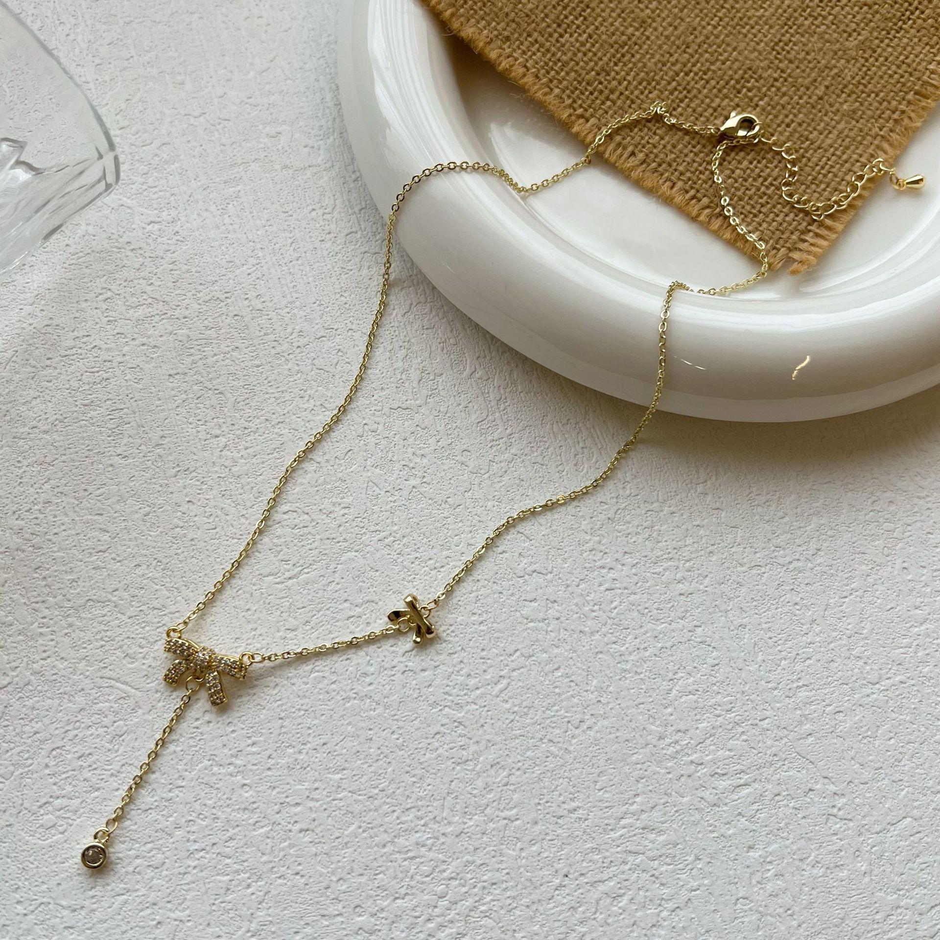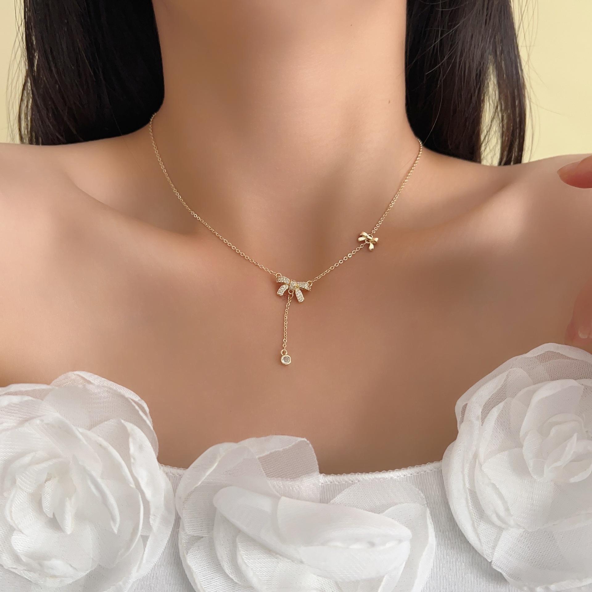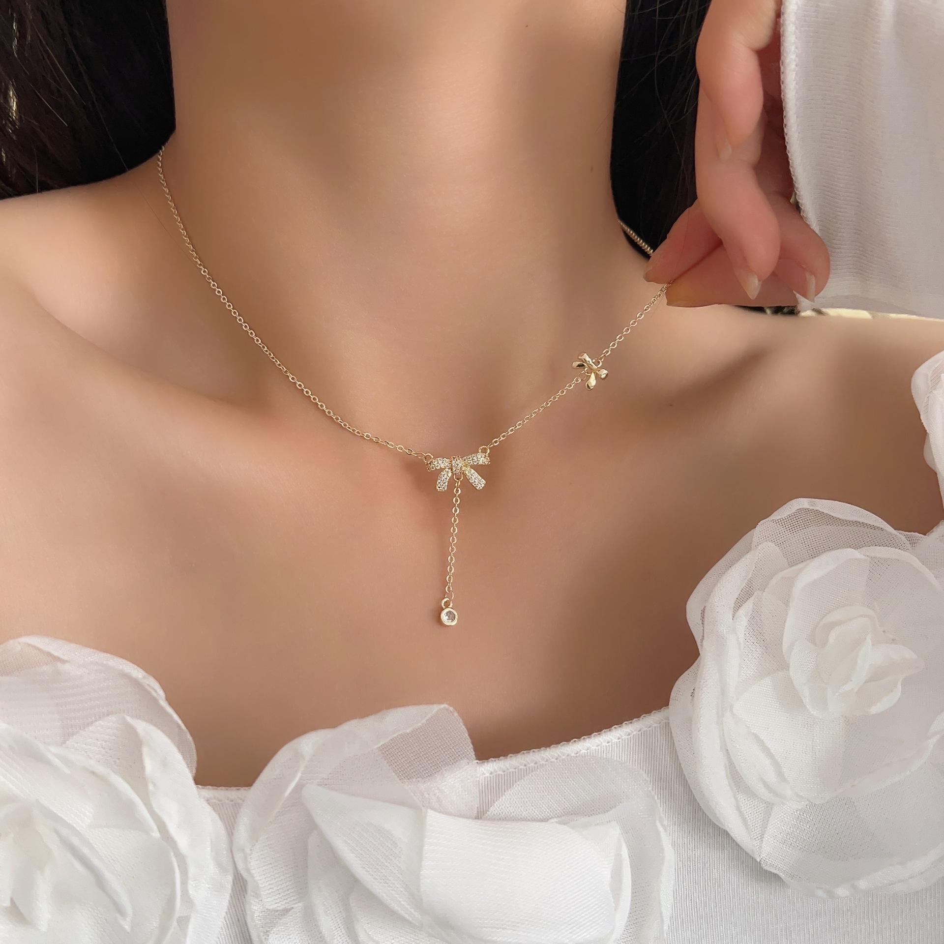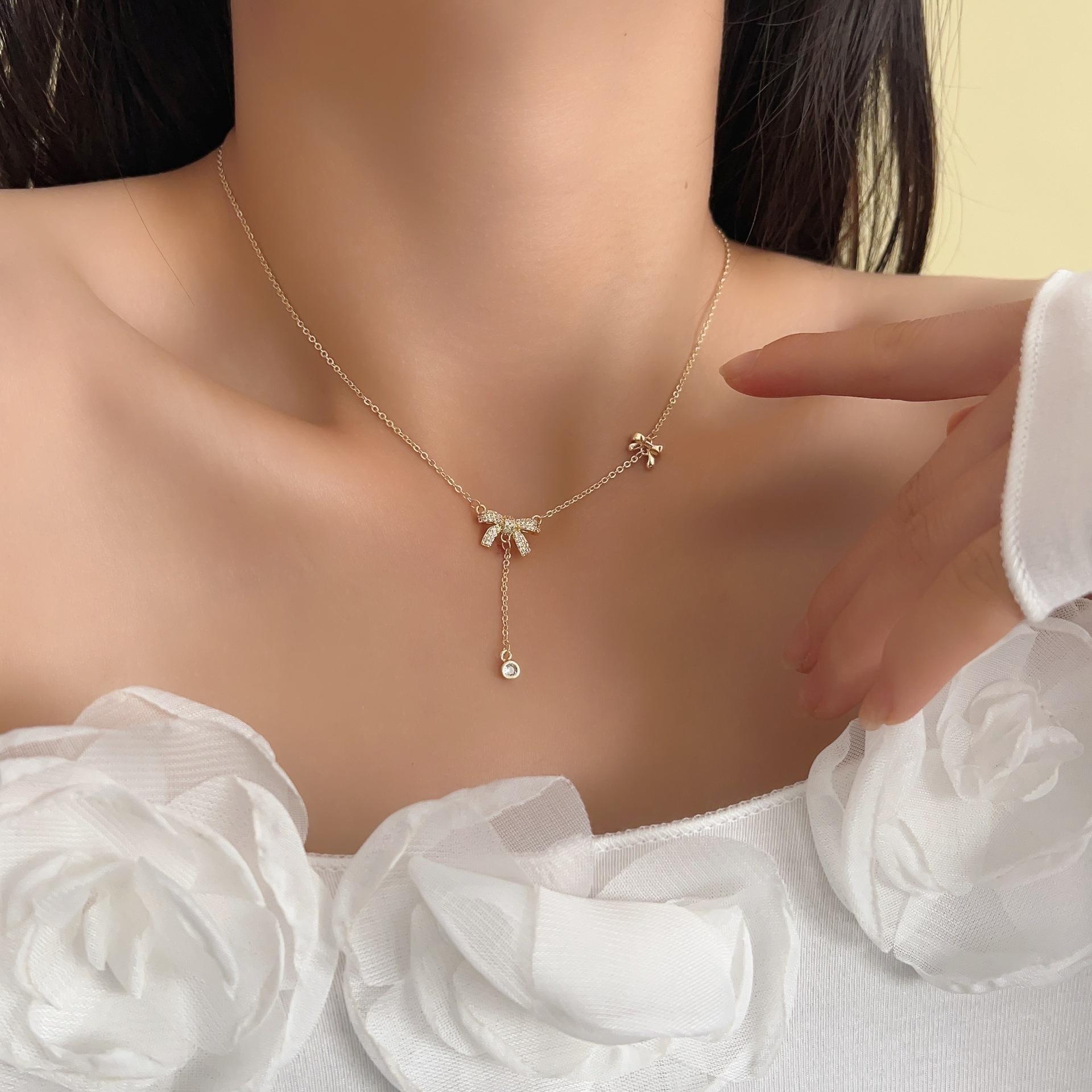 Collar de Lazo para Mujer 2025 Nuevo Lujo Accesible Diseño Nicho Cadena Clavicular Elegante de Alta Gama Sencillo y Trendy