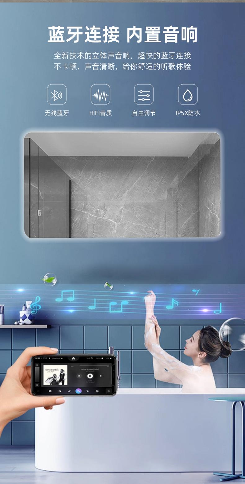 "three-color light + defogging + time and temperature display + bluetooth smart speaker [luxury top upgrade aluminum alloy optical lampshade + pvc back panel high-end and durable]"