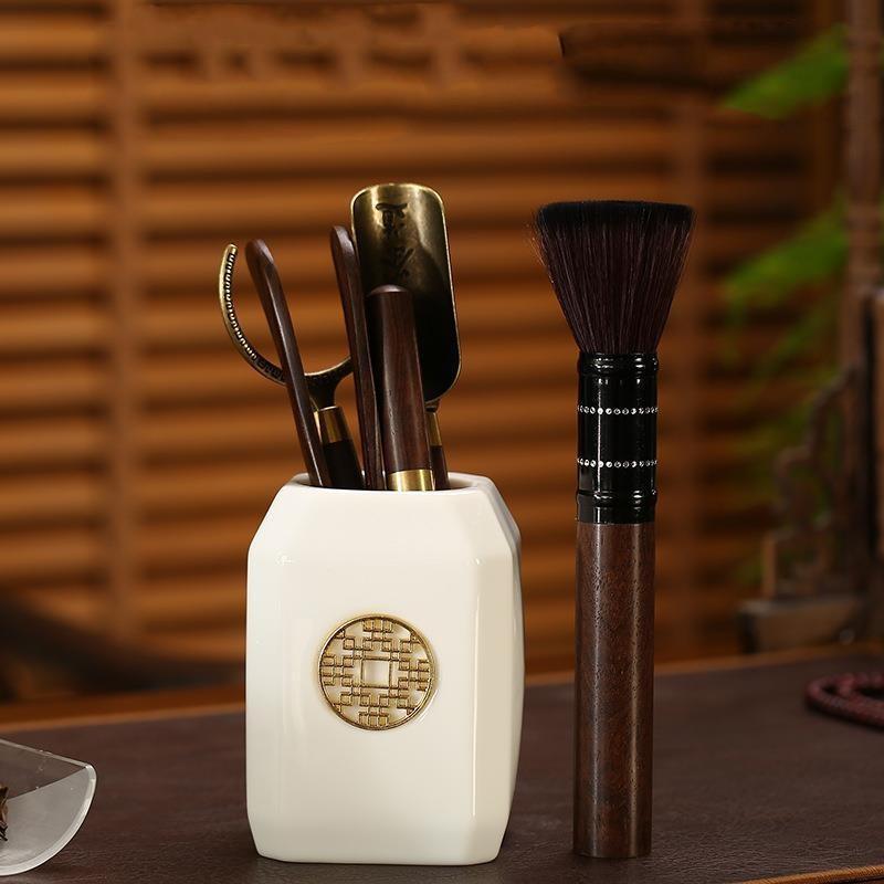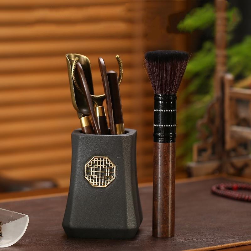 Juego de té de cerámica transfronterizo personalizado para seis caballeros, juego de té de Kung Fu, accesorios, suministros, pinza, cepillo, mesa de té, preparación de té