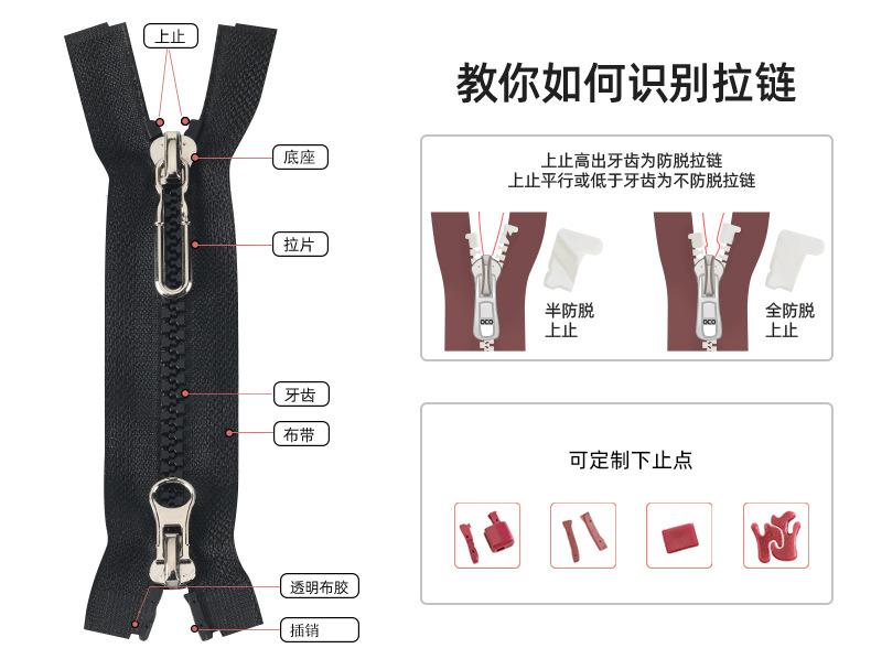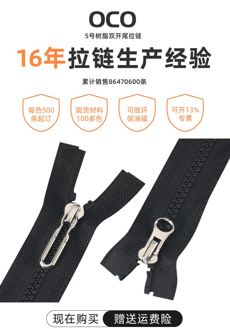 Cremallera de Doble Extremo y Doble Abertura al Por Mayor No. Cremallera de Plástico Resina 5 para Ropa Chaquetas Solapa Autobloqueante Cremallera de Resina Personalización