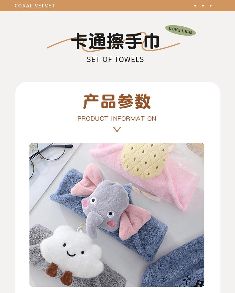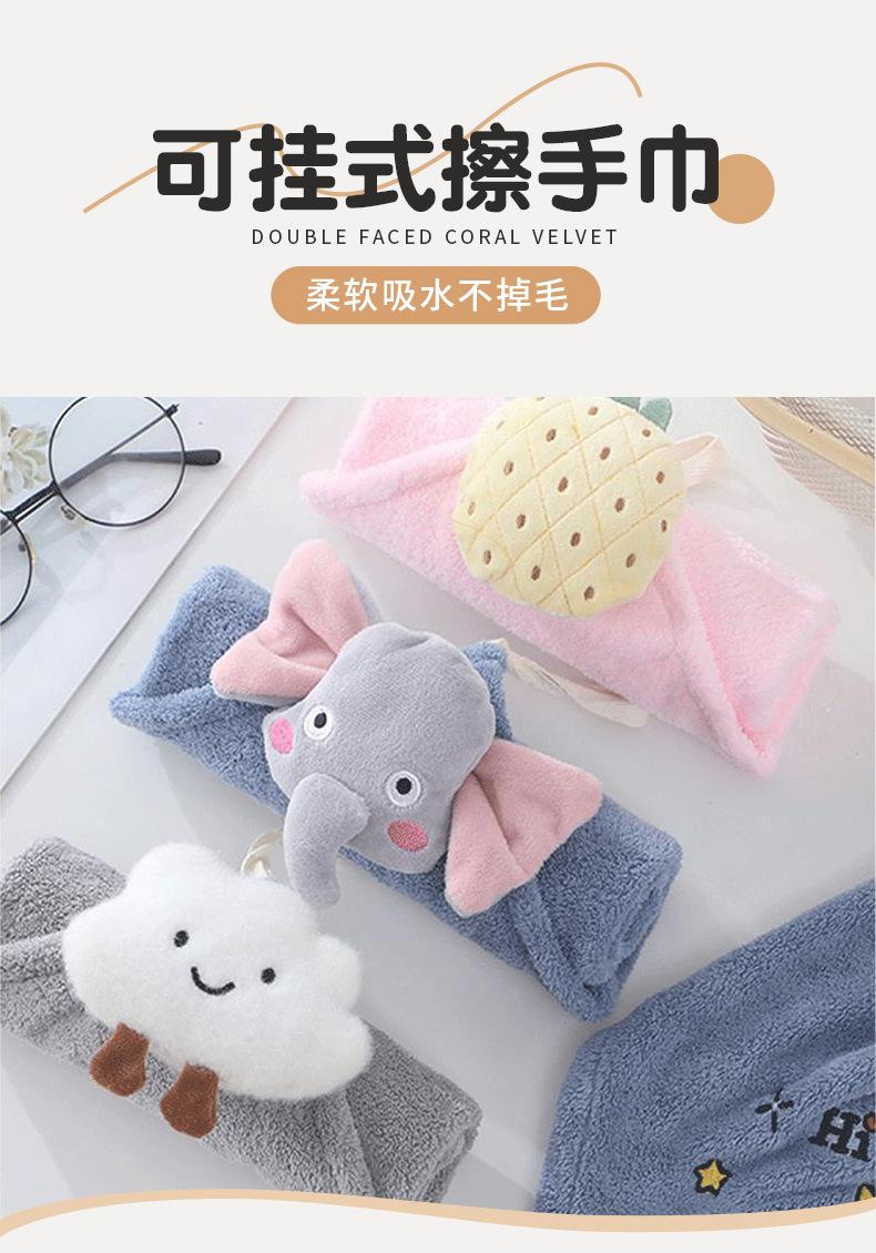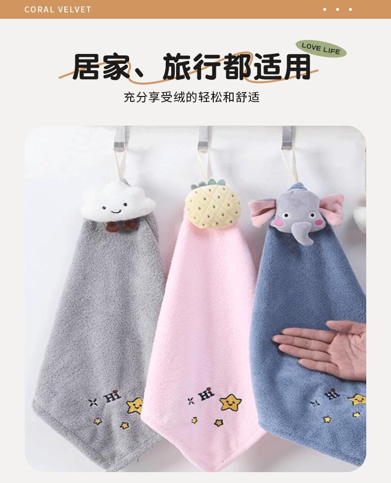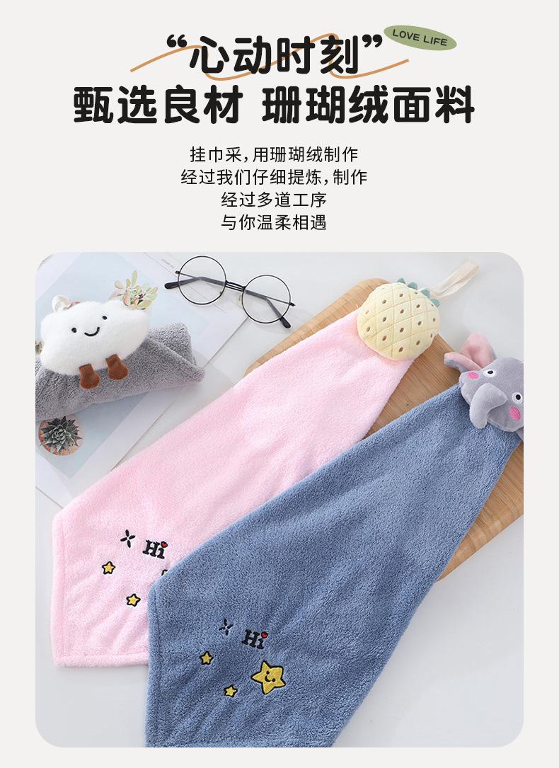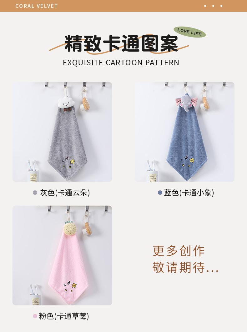 Toalla de mano de vellón coral para colgar en el hogar, para niños, con dibujos animados, gruesa, suave, absorbente y sin pelo, pequeña y cuadrada.
