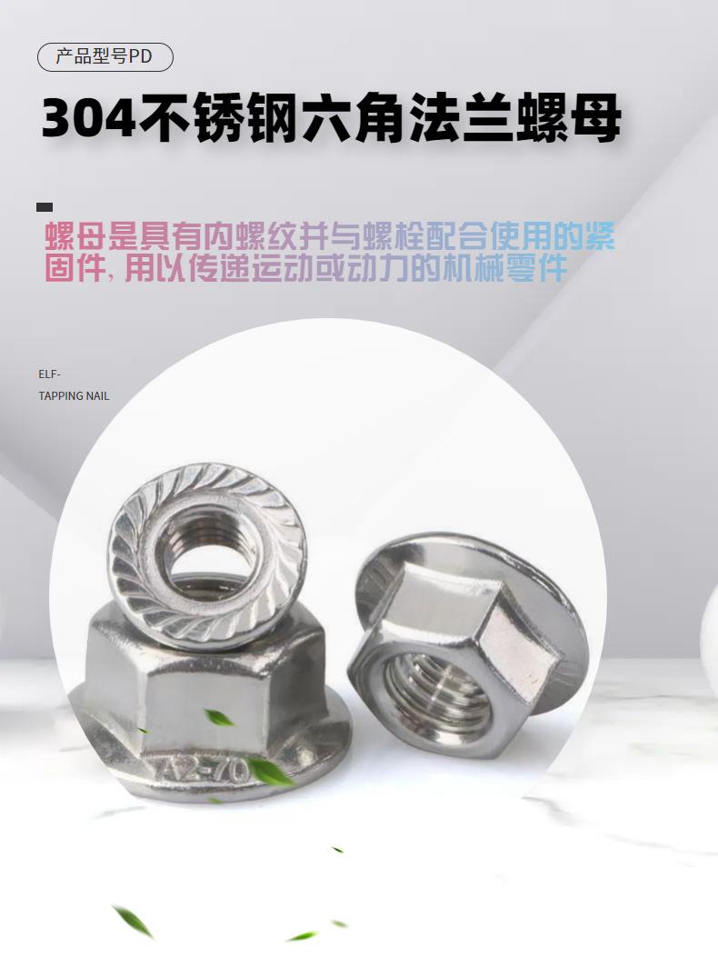 Tuerca de Brida de Acero Inoxidable 304 Americano Ifi145 Blanco Lavado Tuerca de Brida Hexagonal Tuerca Dentada Antideslizante