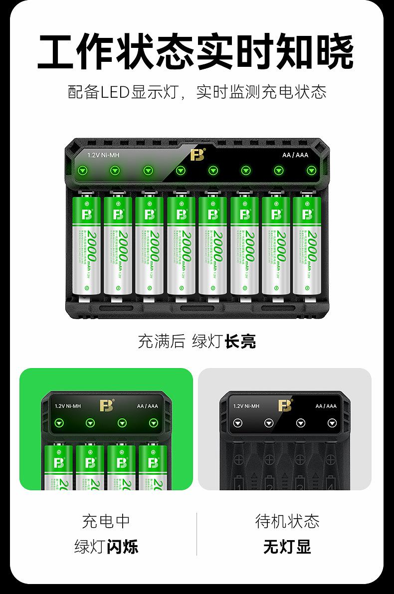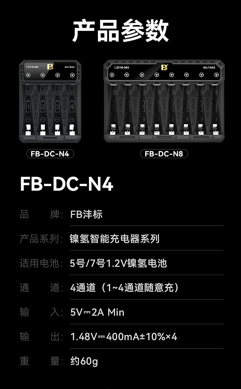 Cargador de Baterías Ni-Mh Fengbiao Dc-N4 1.2V Batería Recargable Aa/Aaa No. 5 No. 7 Batería Carga Rápida USB