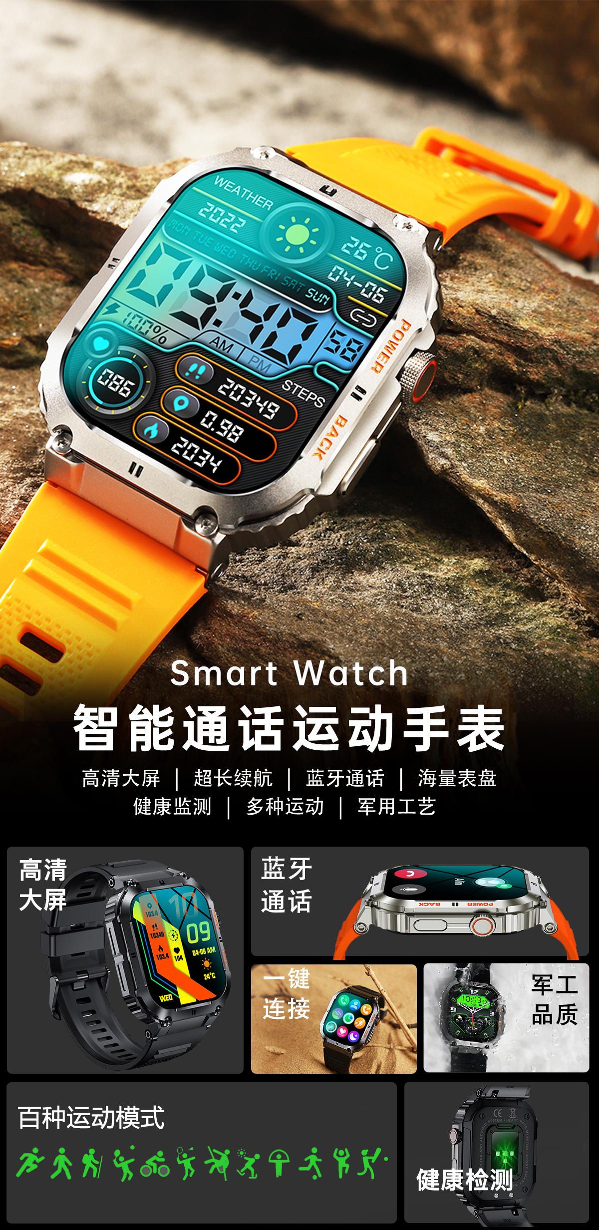 Waterproof, Take photos, Step counting, Heart rate monitoring, Blood pressure measurement, Bluetooth call, Sma...