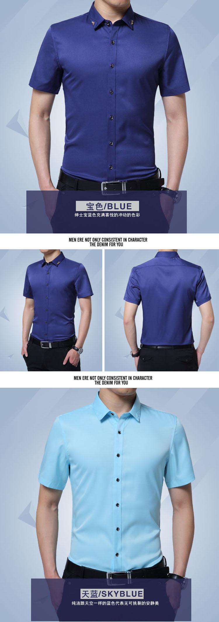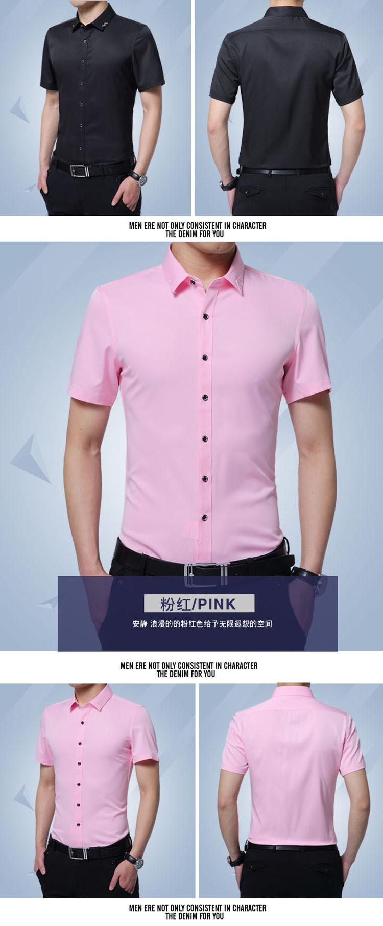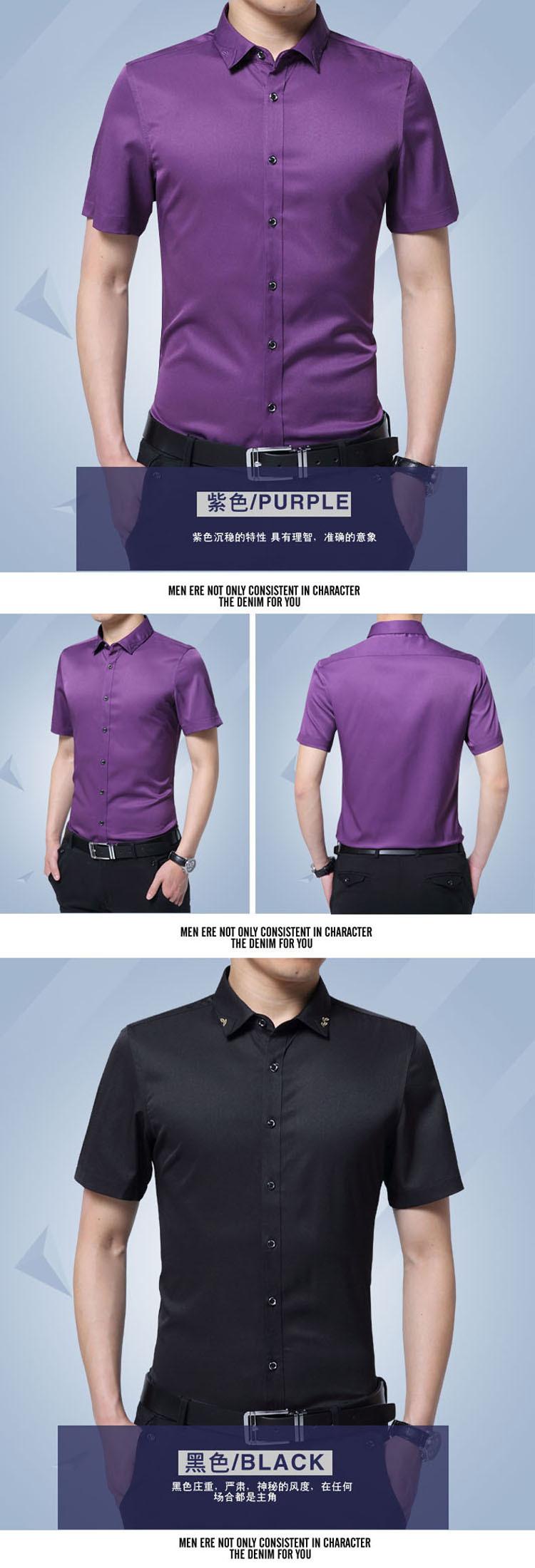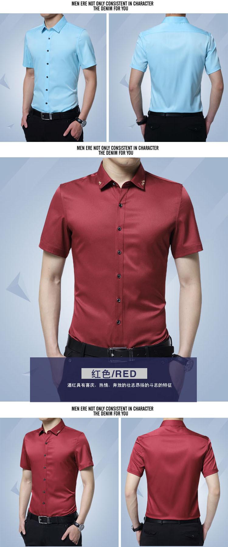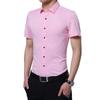 Compra Camisa de manga corta ajustada de verano para hombre, camisa informal de seda sin planchado, transpirable, para negocios al por mayor en Joom.pro