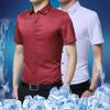 Camisa de manga corta ajustada de verano para hombre, camisa informal de seda sin planchado, transpirable, para negocios
