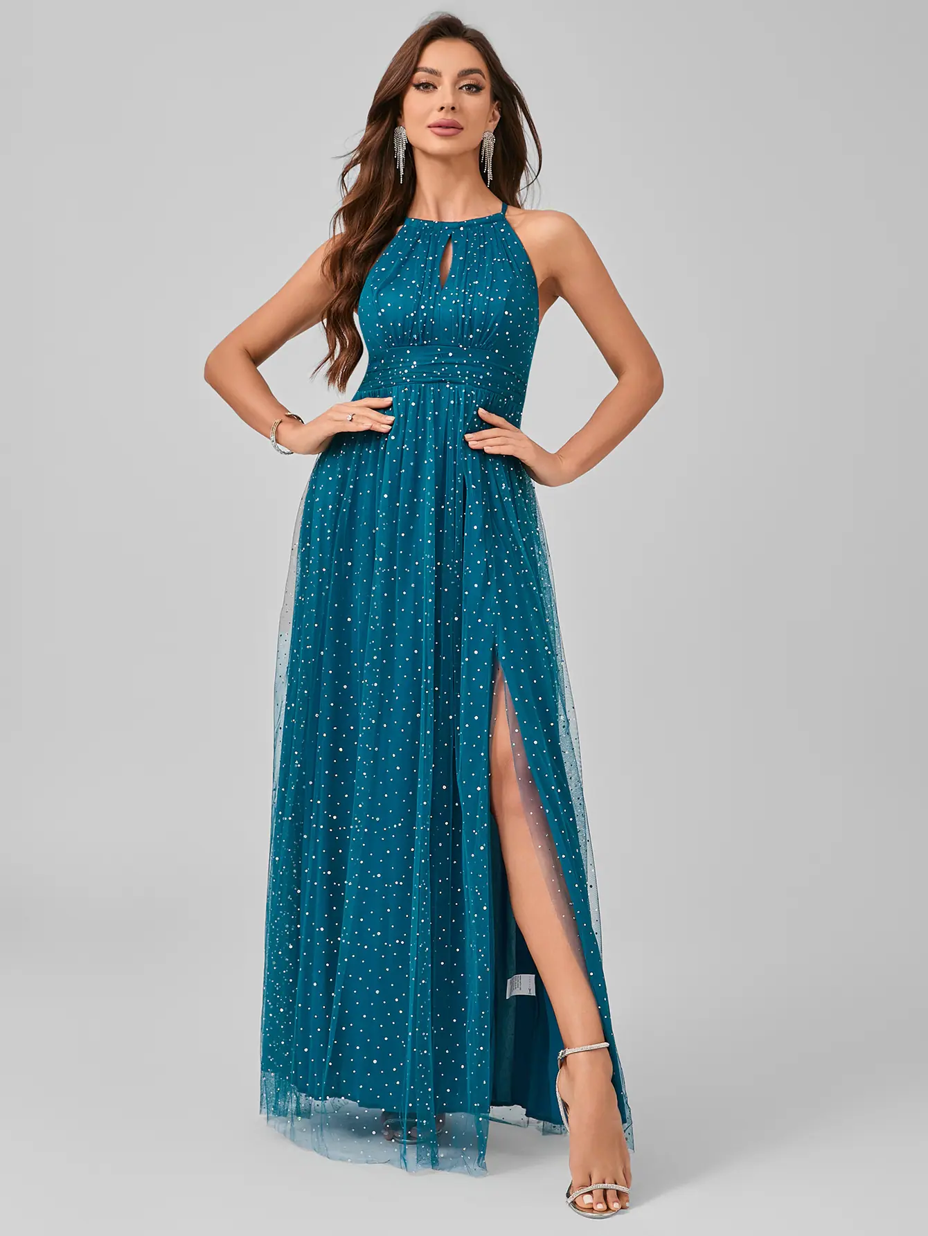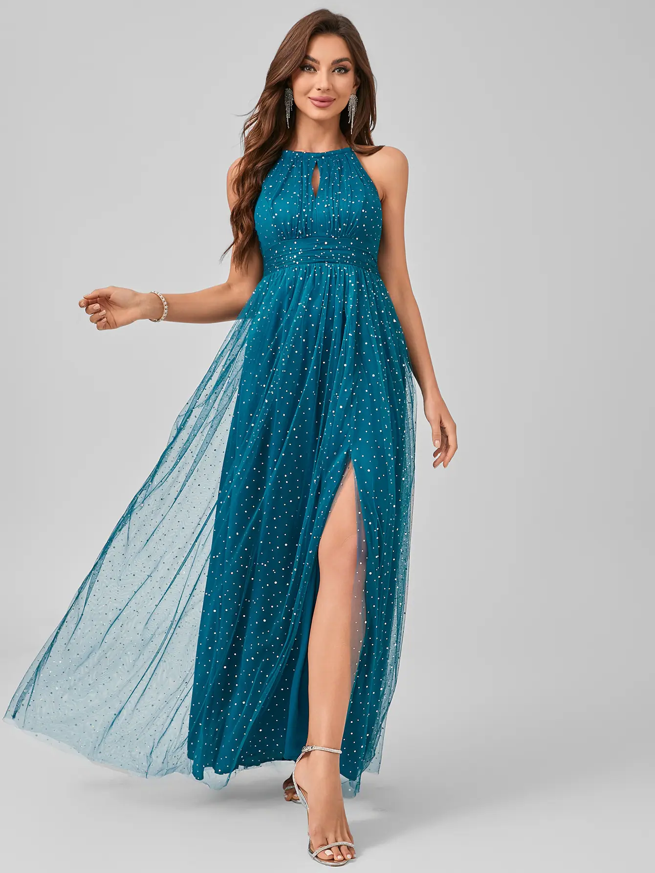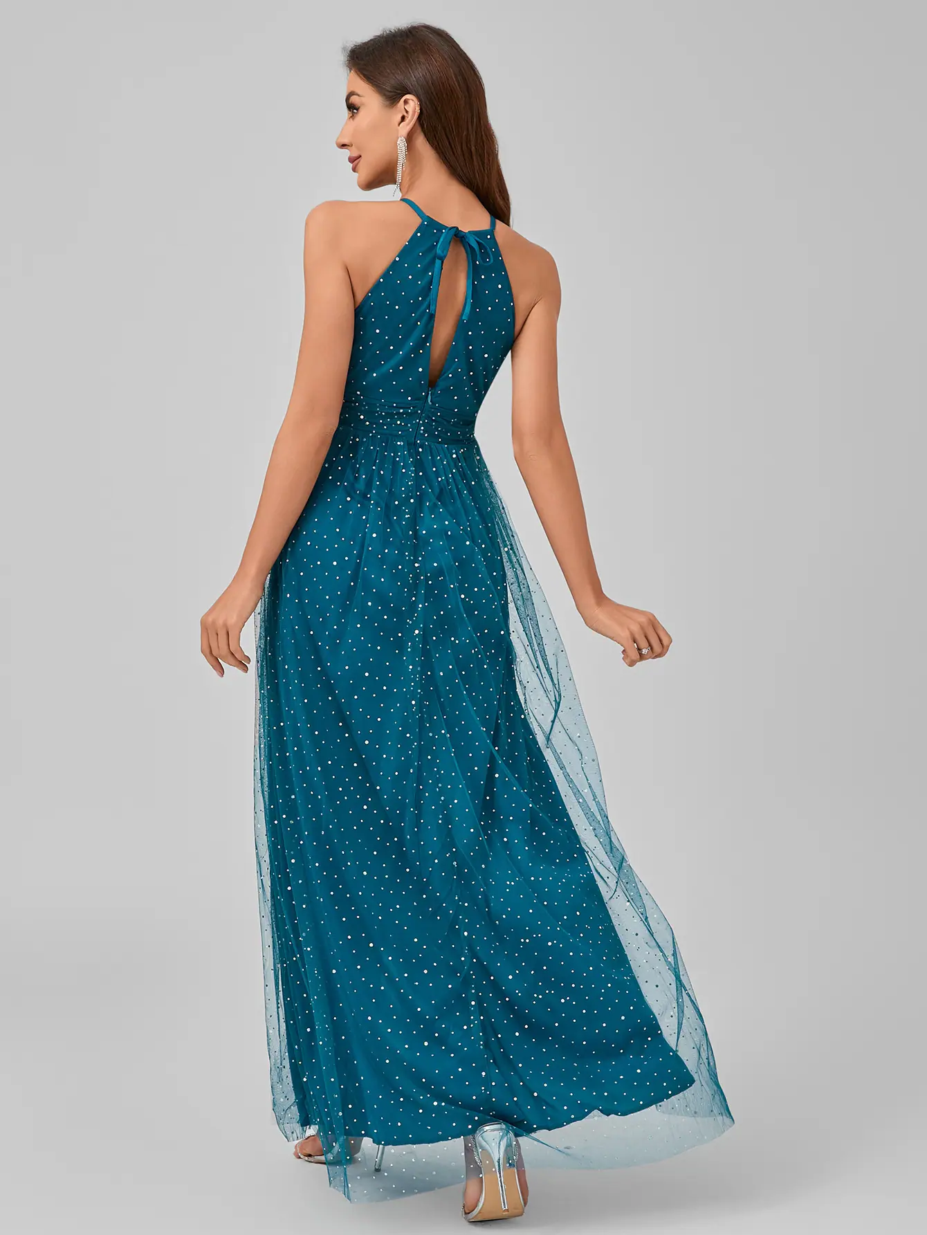 Vestido de Noche Elegante con Cuello Halter Transfronterizo de Amazon 2026 Vestido Nuevo Ropa de Mujer de Comercio Exterior Vestido de Noche de Malla Estilo Largo