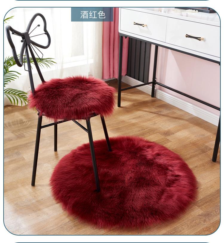 Alfombra de felpa blanca pura para dormitorio, mesita de noche, cojín de mariposa de color liso para silla, taburete de maquillaje, cojín para sofá