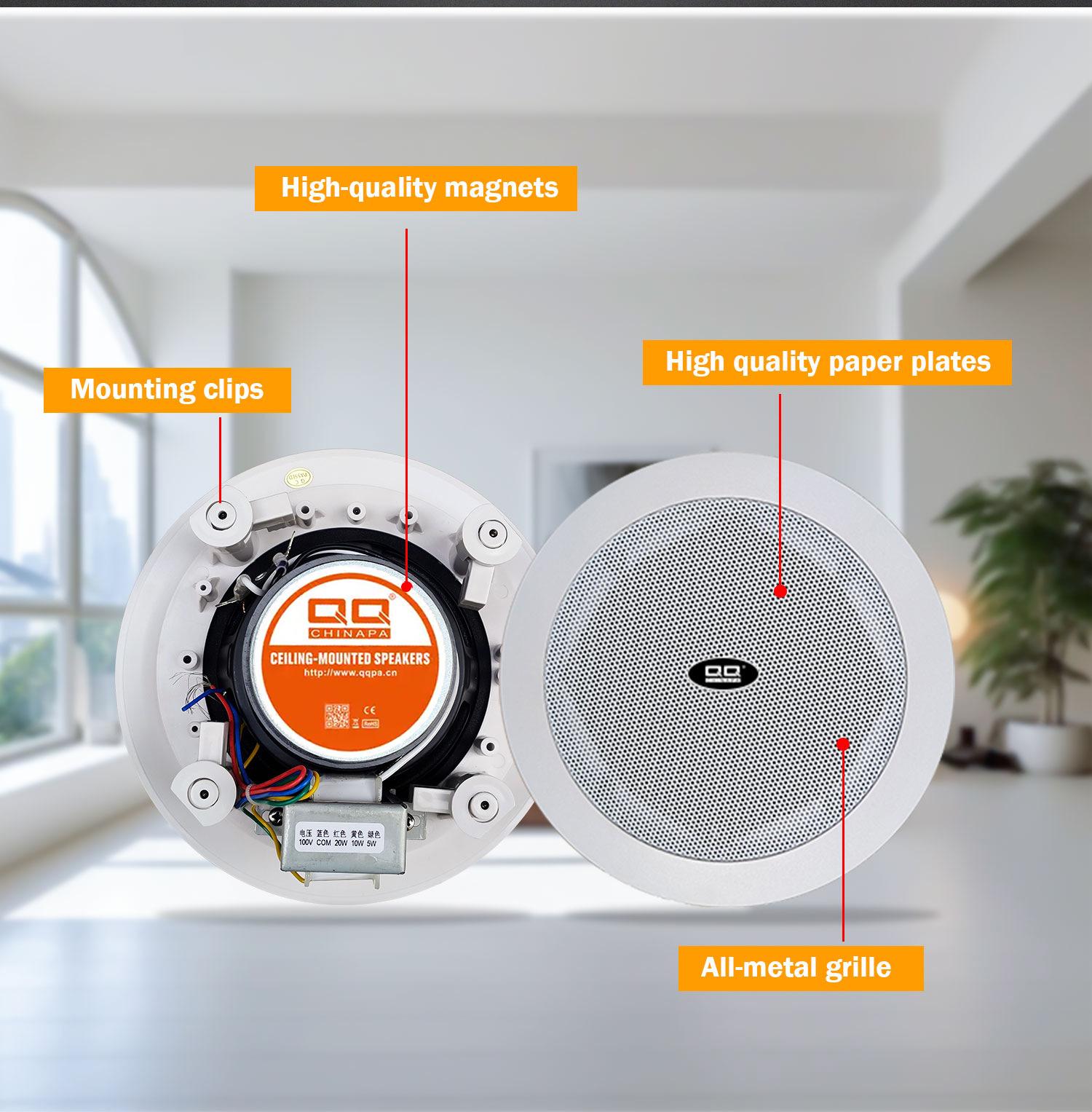 20W 30W Sistema de megafonía para música de fondo Altavoz de techo dedicado Voltaje constante Coaxial Montado en techo
