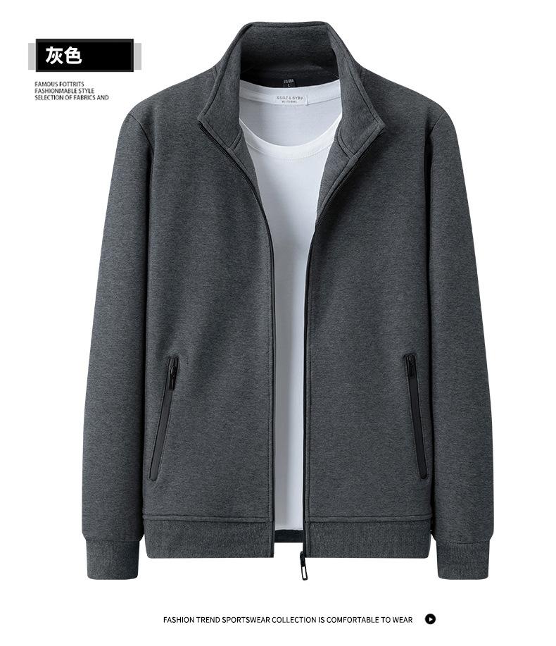 Chaqueta de Algodón de Color Puro para Primavera y Otoño para Hombre con Cuello Mao Cárdigan Sudadera Ropa Deportiva Running Fitness Casual Holgada