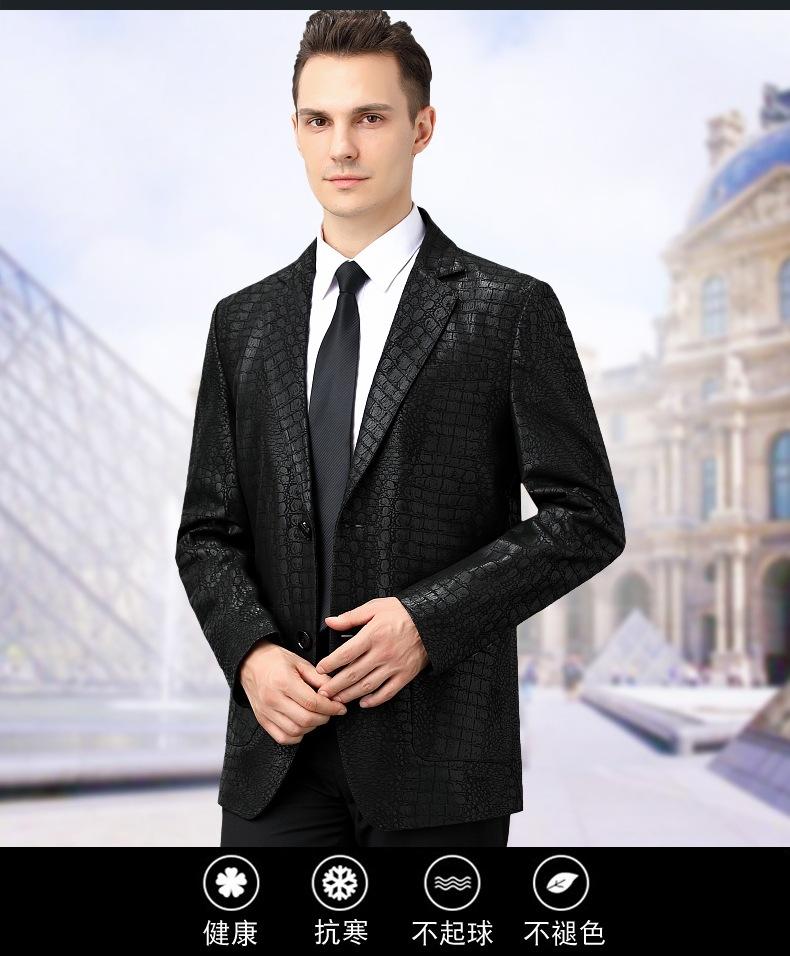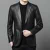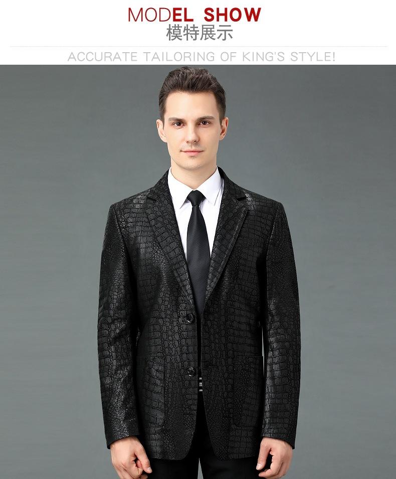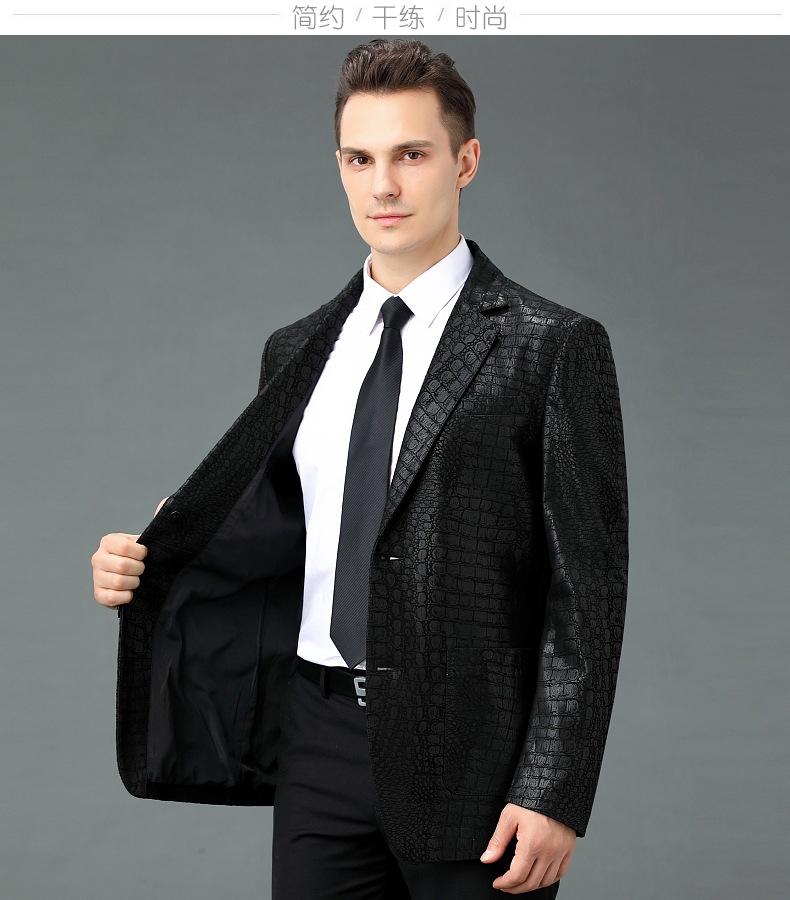 Traje de cuero auténtico de Haining para hombre, moda otoño-invierno 2025, cuello de moda, elegante traje de cuero, abrigo de piel de oveja para hombre.
