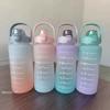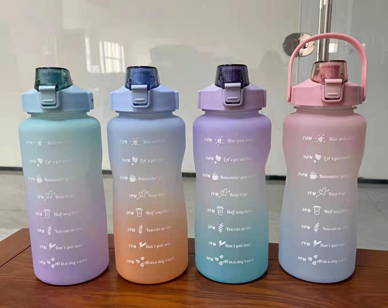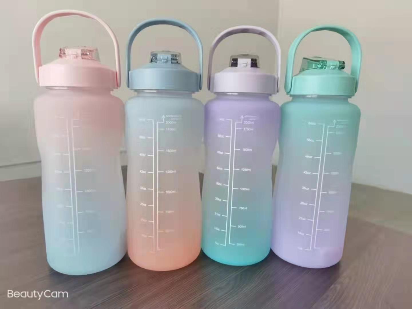 Hervidor deportivo de gran capacidad con gradiente de Amazon transfronterizo, taza de plástico con pajita, tapa rebotante, portátil, pequeño, para hombre.