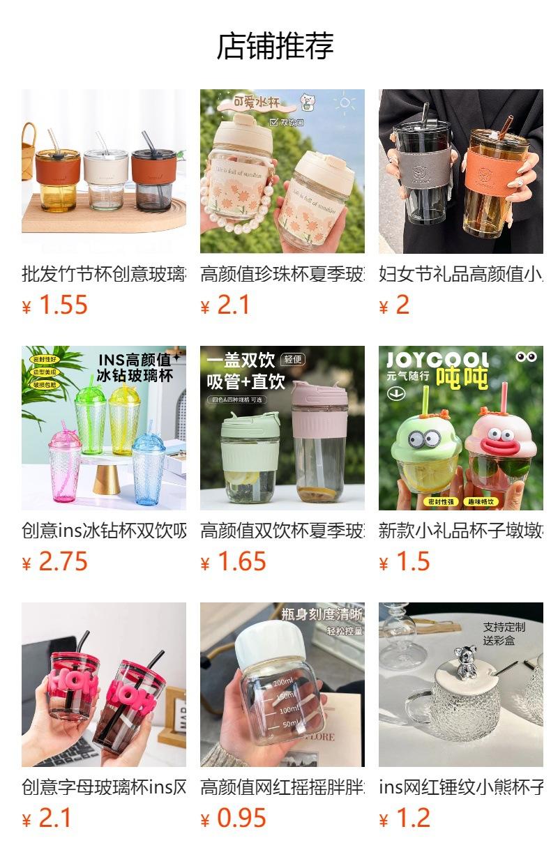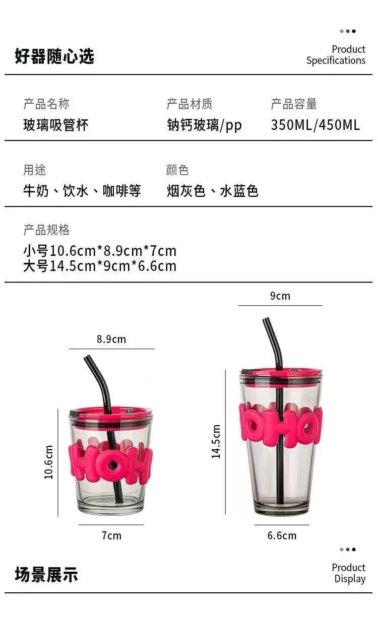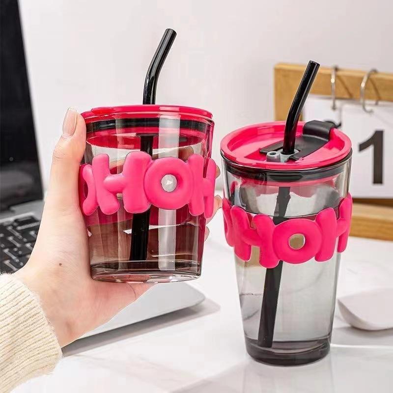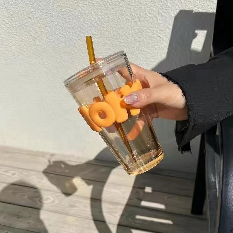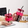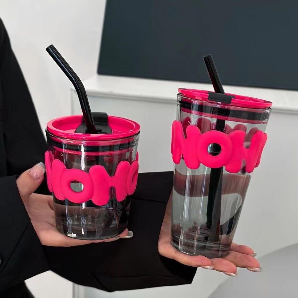 Vaso de vidrio creativo ins viento rojo de red taza de agua impresión de logotipo taza publicitaria moda taza doble para beber vaso con boquilla