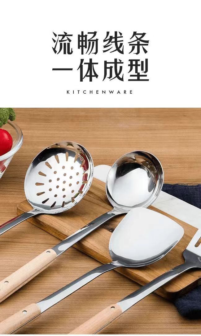 Espátula de acero inoxidable, cuchara para sopa, pala para freír, cuchara para arroz, espátula para sartén, artículos de cocina para el hogar, utensilios de cocina, traje