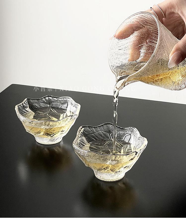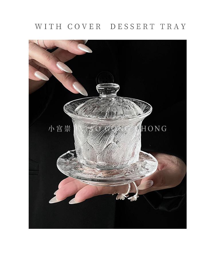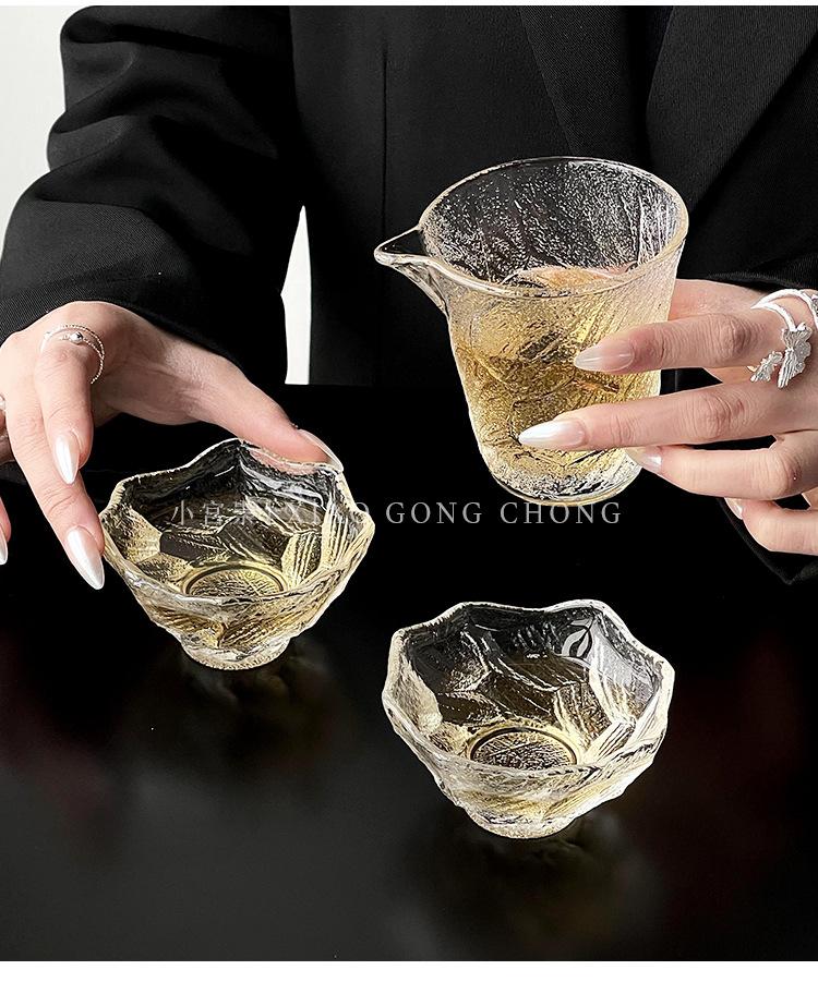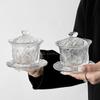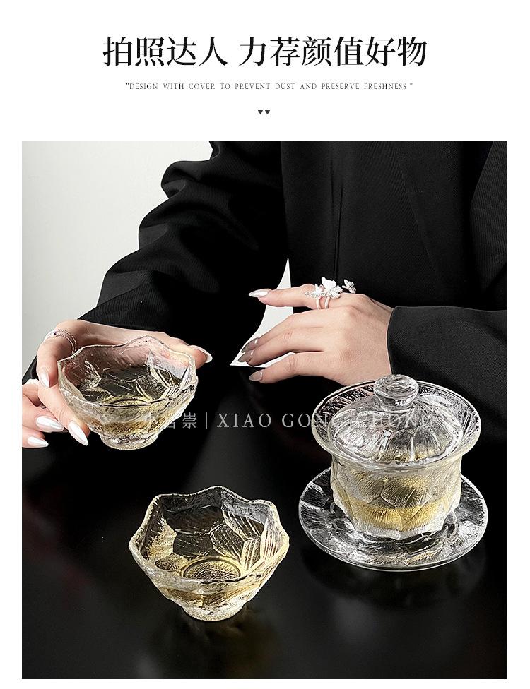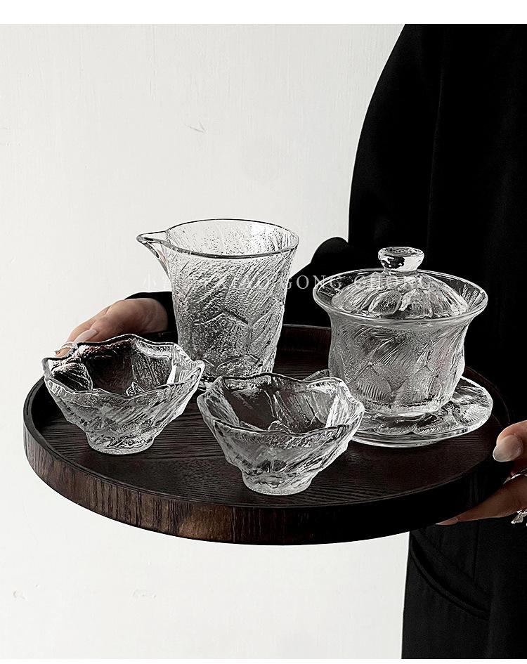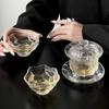 Venta al por mayor taza de té de vidrio taza justa tapa plato traje estilo japonés hogar juego de té kung fu accesorios taza de té