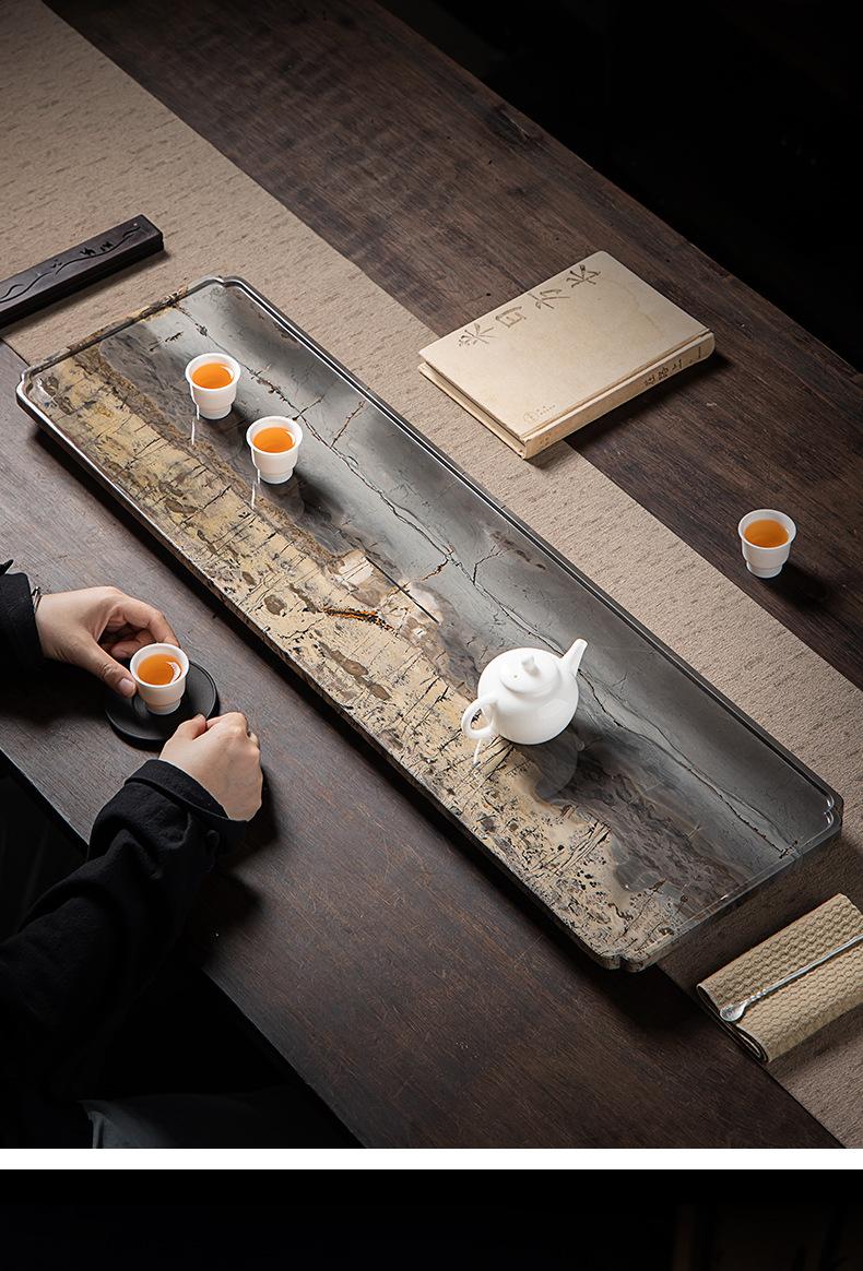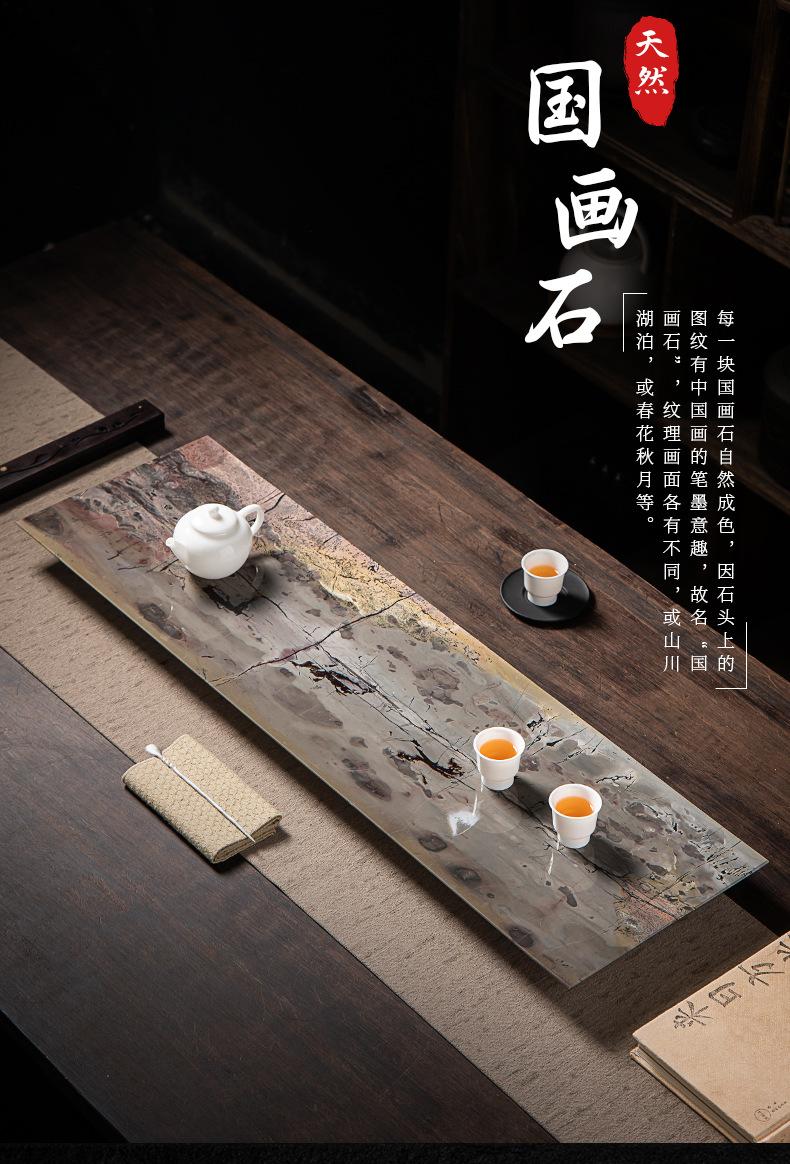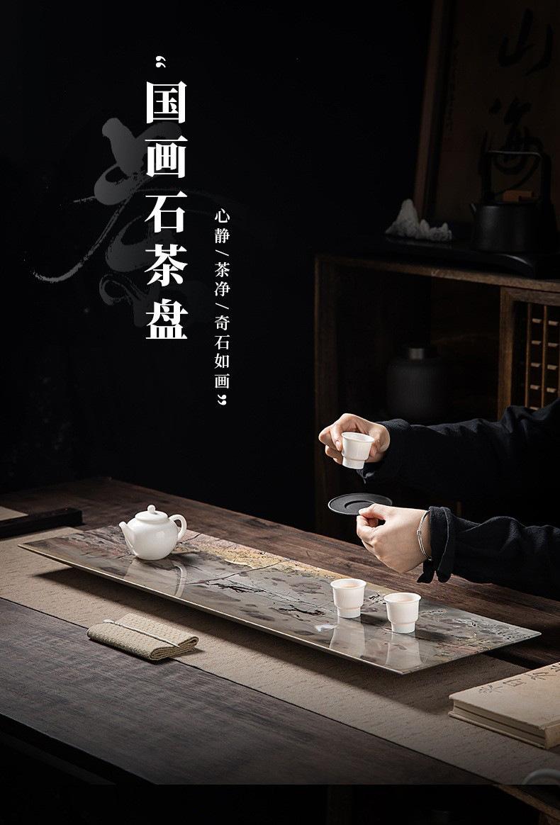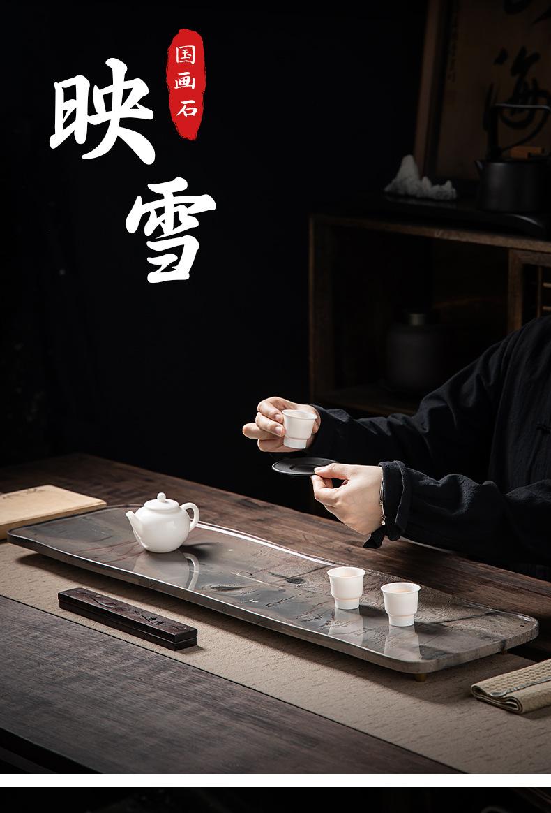 Bandeja de Té de Piedra Natural Pintura China Completa Lujo Ligero Moderno Oficina Hogar Mesa de Té de Piedra Ujin Drenaje Burbuja Seca Juego de Té Simple