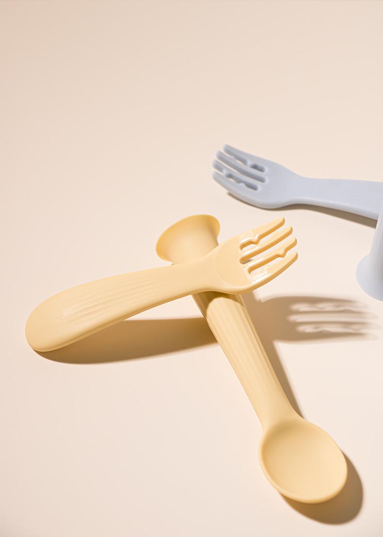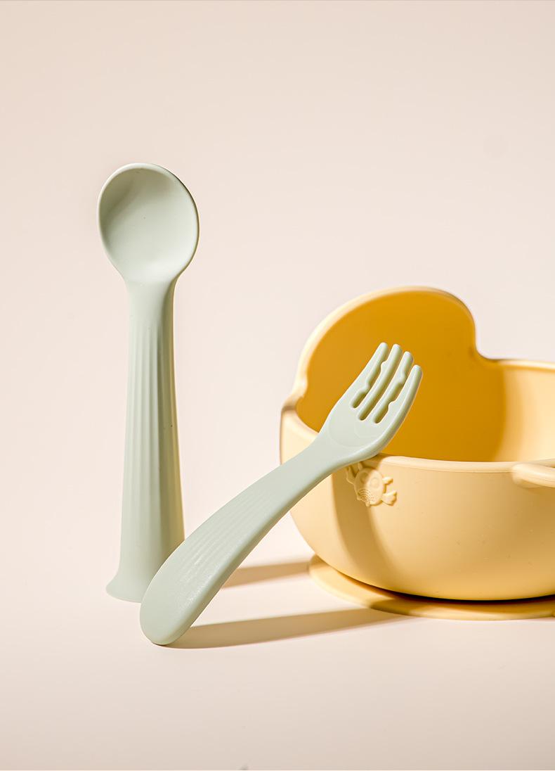 Cuchara suplementaria para alimentos para bebés, tenedor de entrenamiento para bebés, cuchara de pie para niños, tenedor para comer, vajilla autoalimentable.