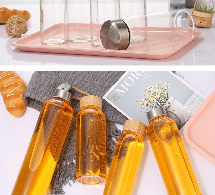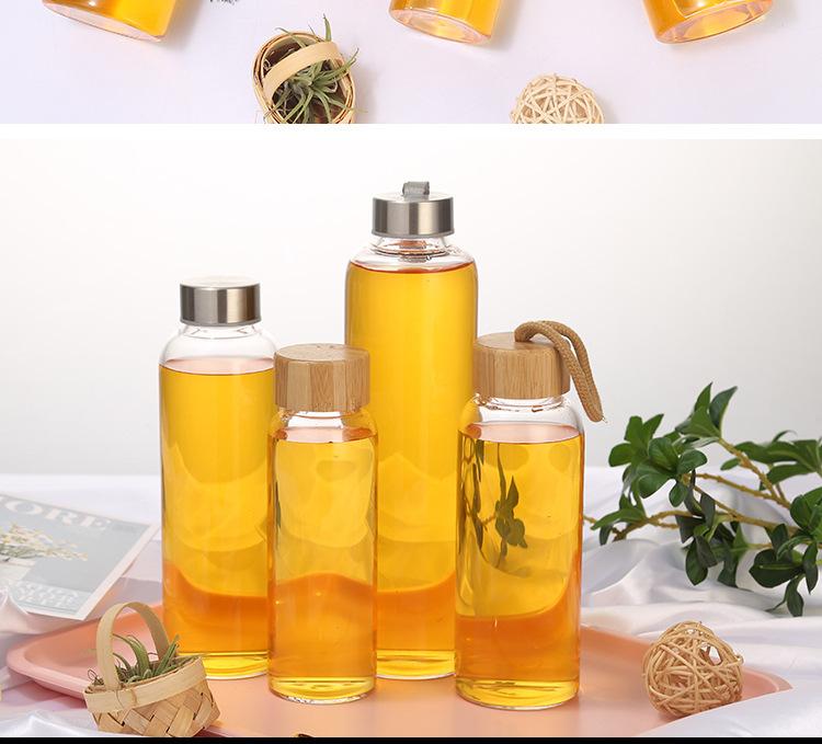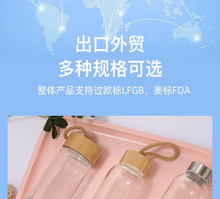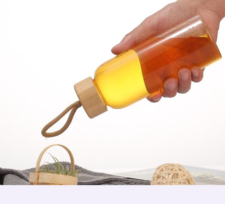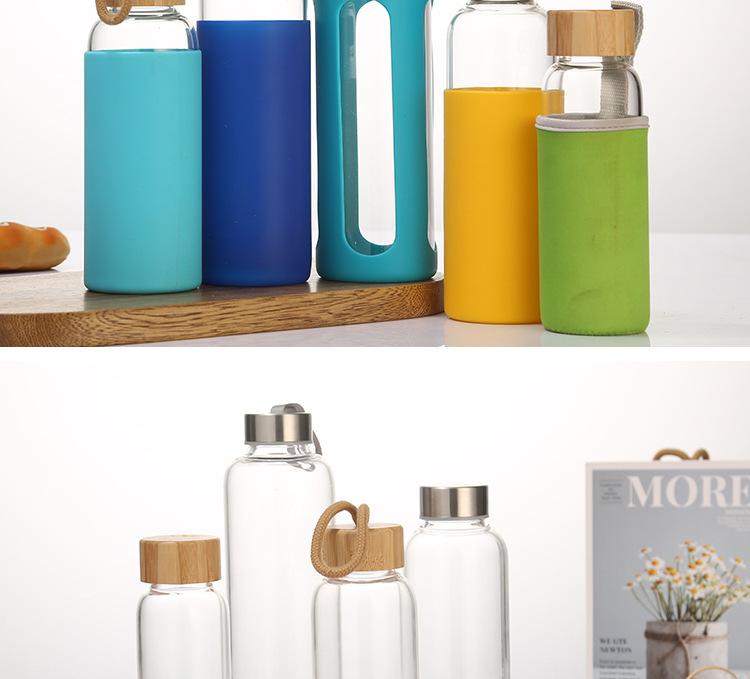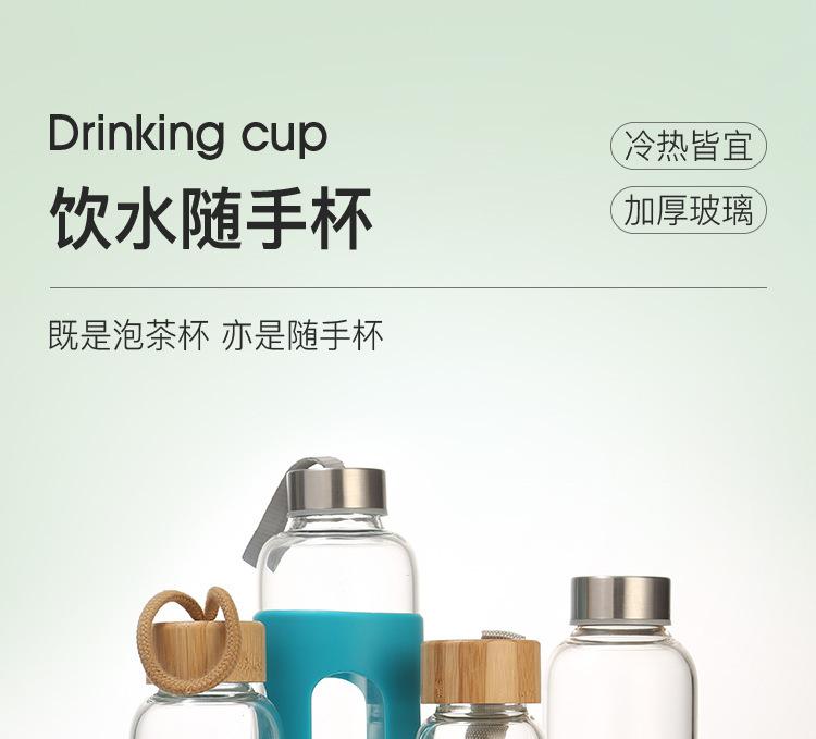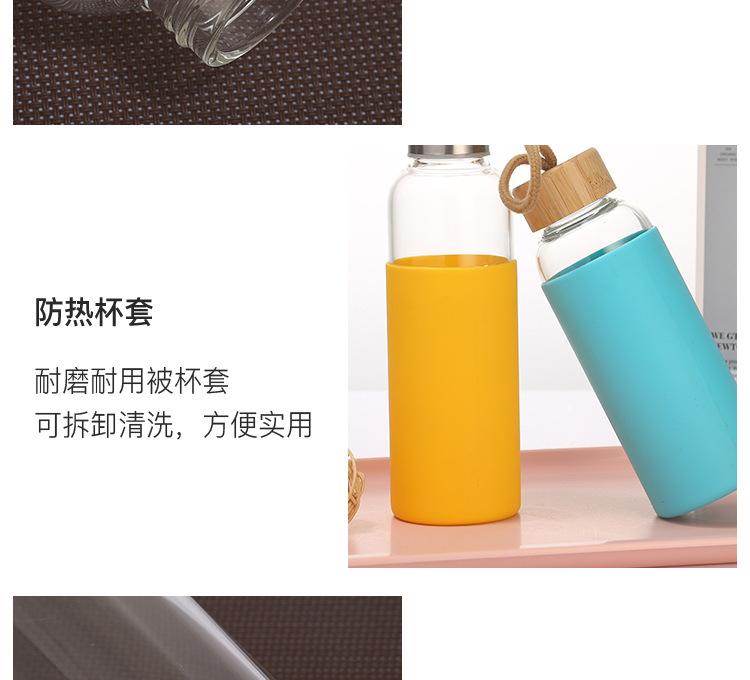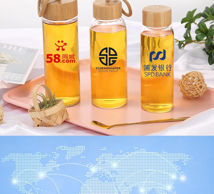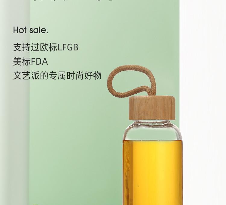 Vaso de vidrio de bambú engrosado portátil para exteriores portátil vaso de vidrio de borosilicato alto vaso de regalo impresión de logotipo