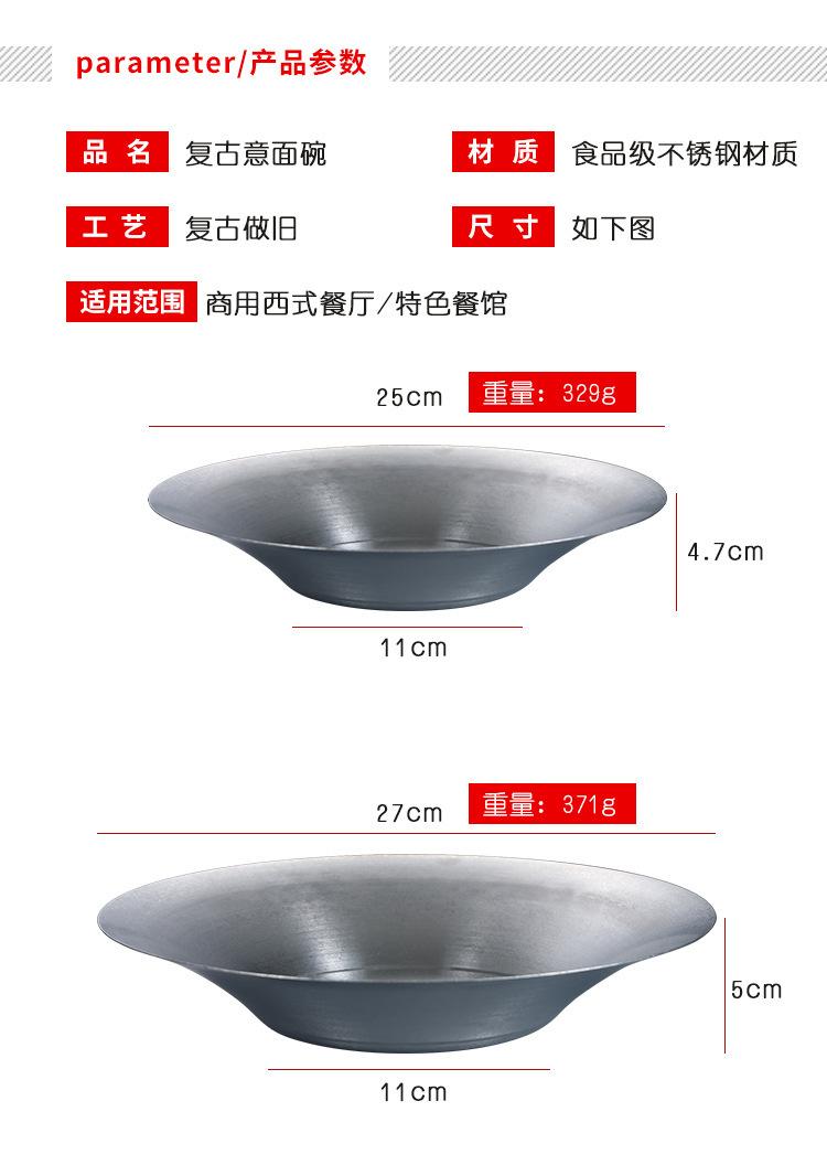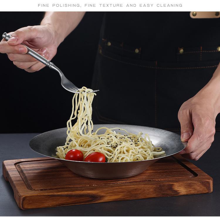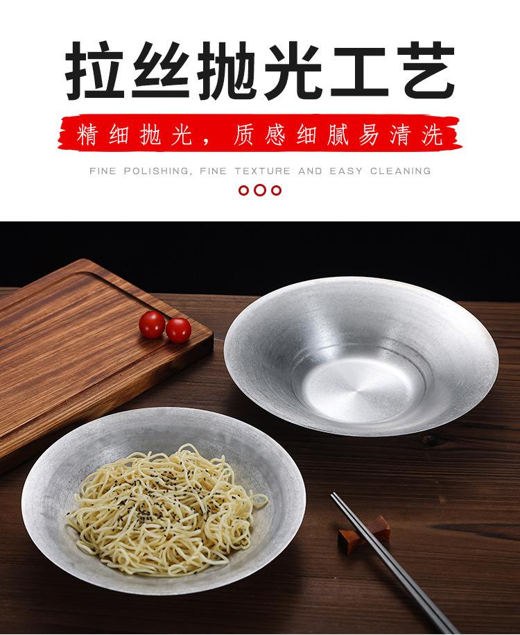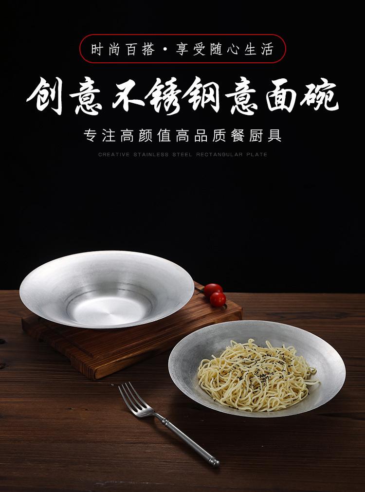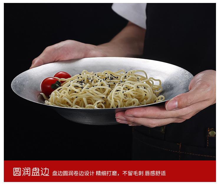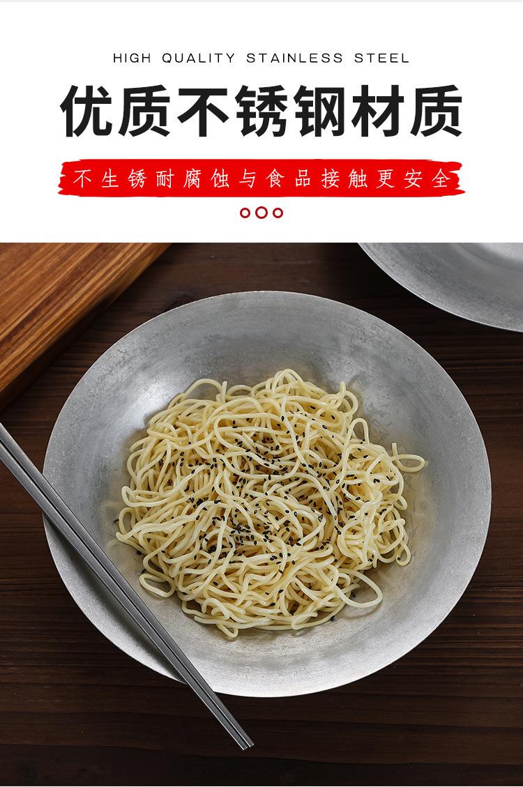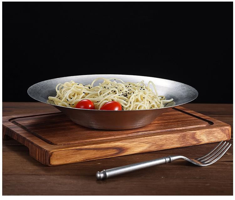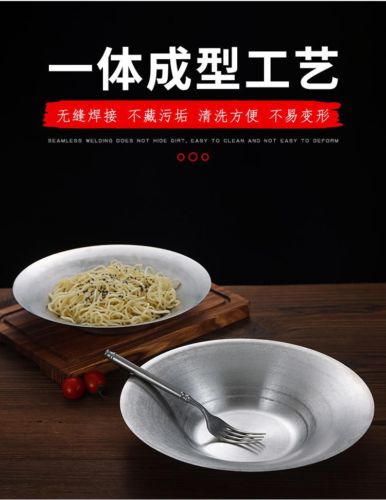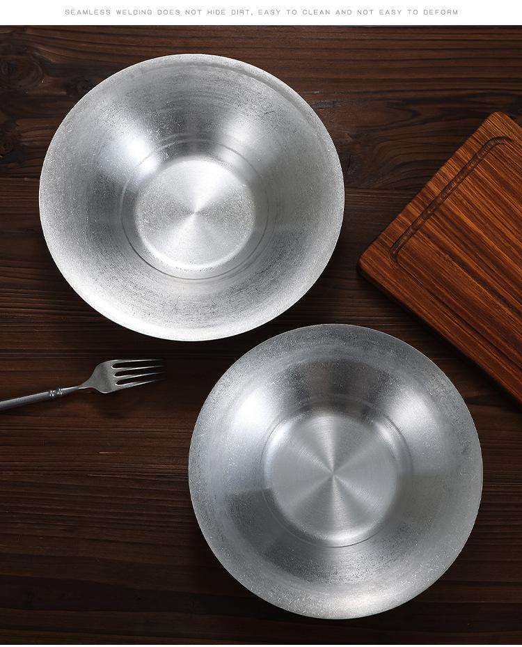 Cuenco de ensalada de frutas de acero inoxidable 304 vintage de estilo coreano, plato de café, plato de pasta, cuenco de fideos fríos, plato de sopa antiguo