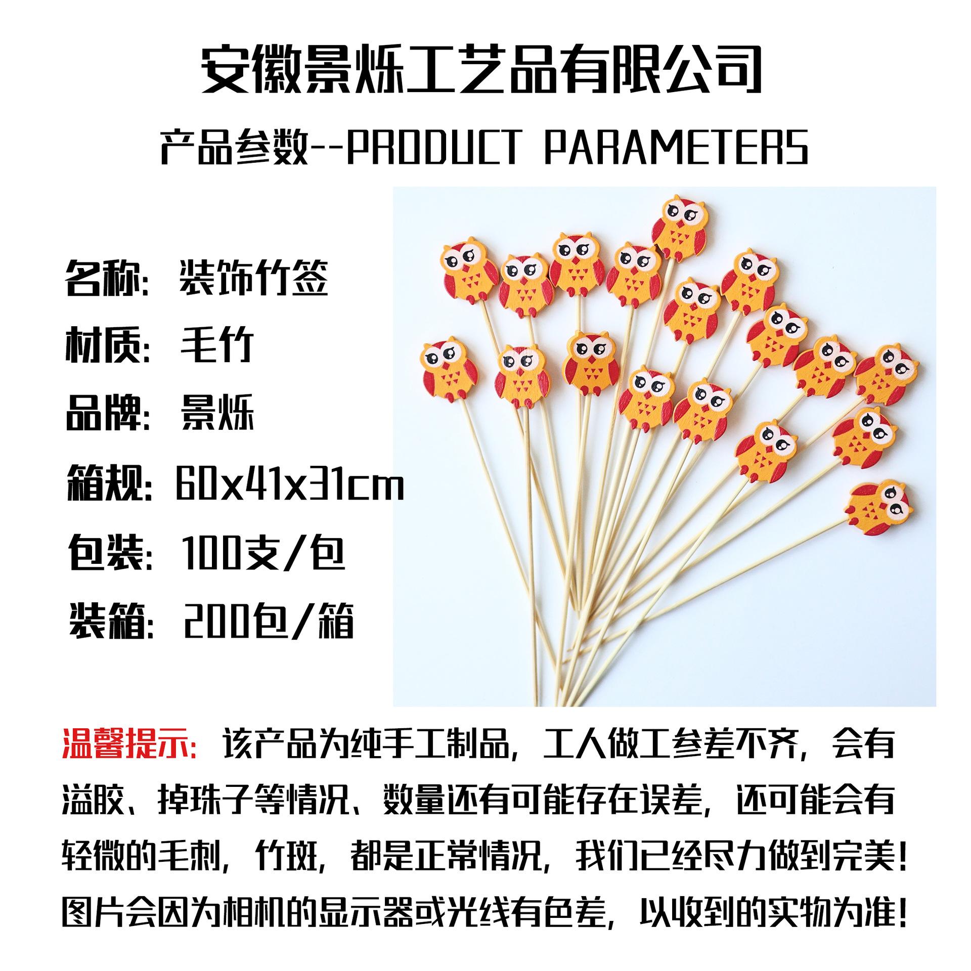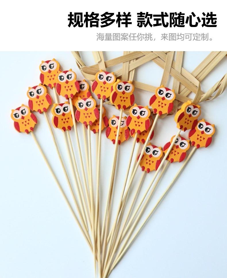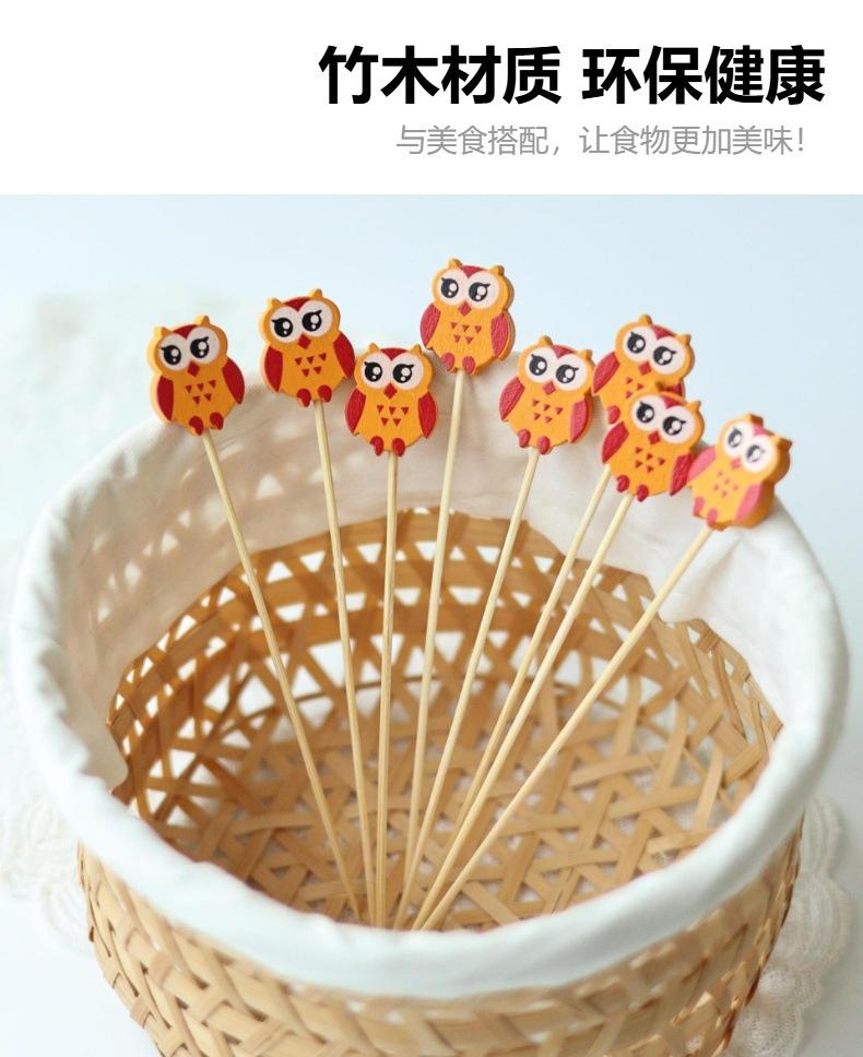 Palito de bambú desechable búho de ojos grandes lindo caricatura palito de fruta fiesta postre decoración de pastel palito de bambú