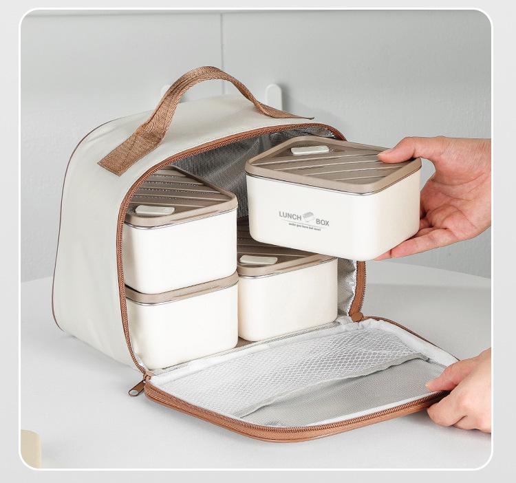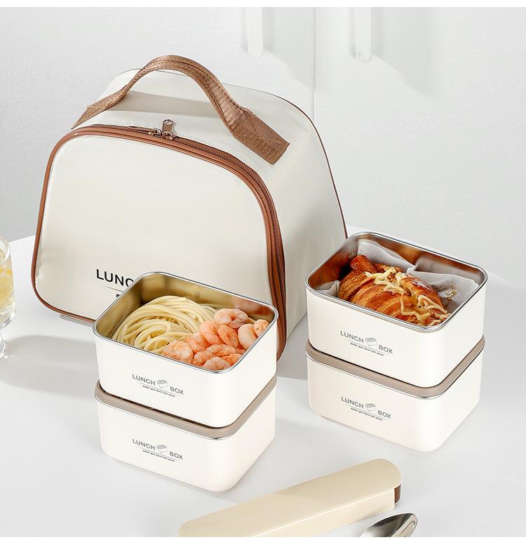 Fiambrera de acero inoxidable 304 de grado alimenticio, bolsa aislante, fiambrera portátil, compartimentos multicapa, gran capacidad