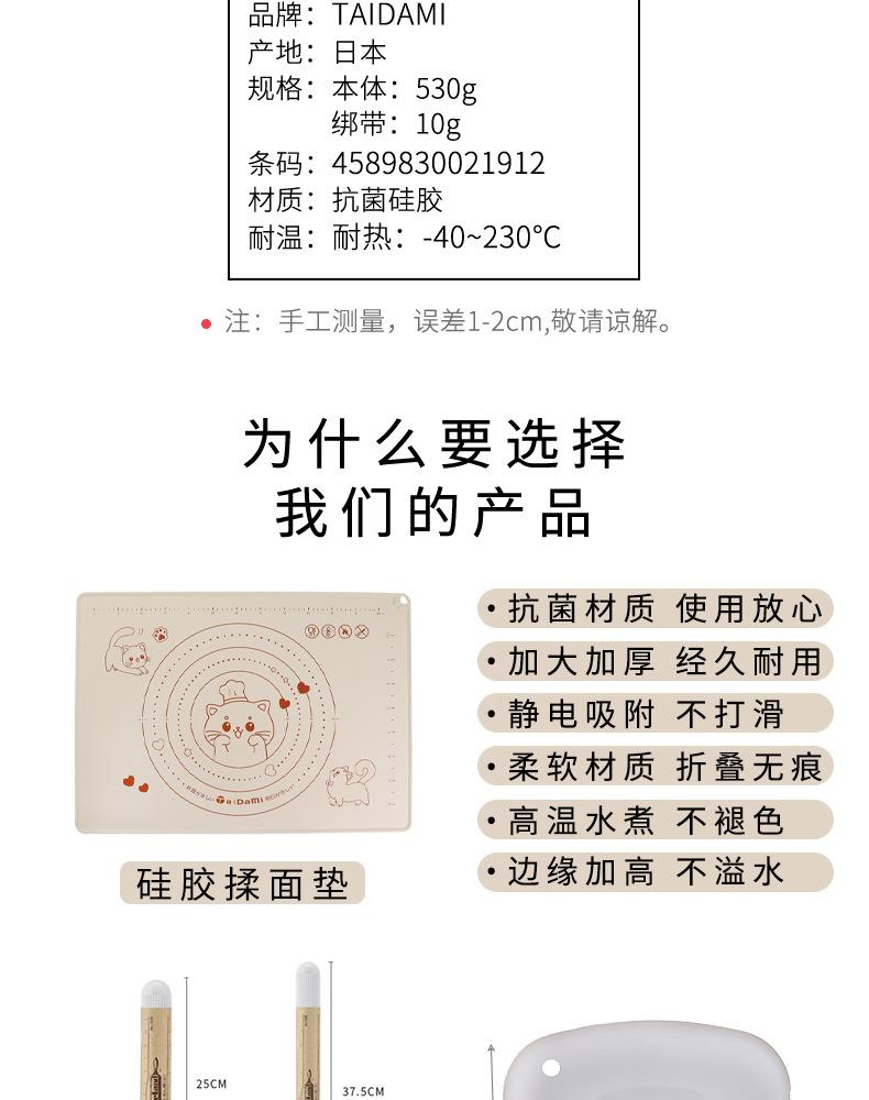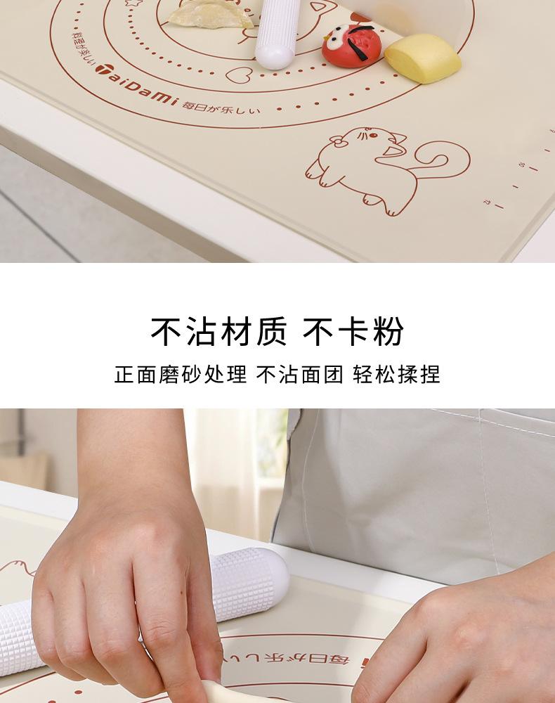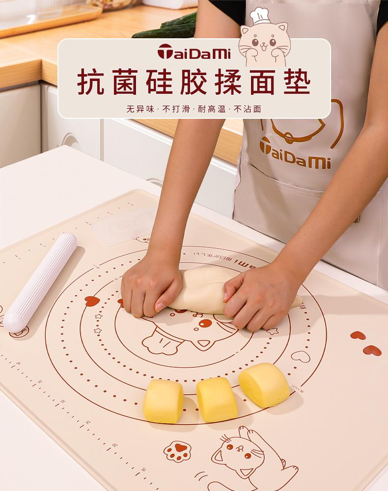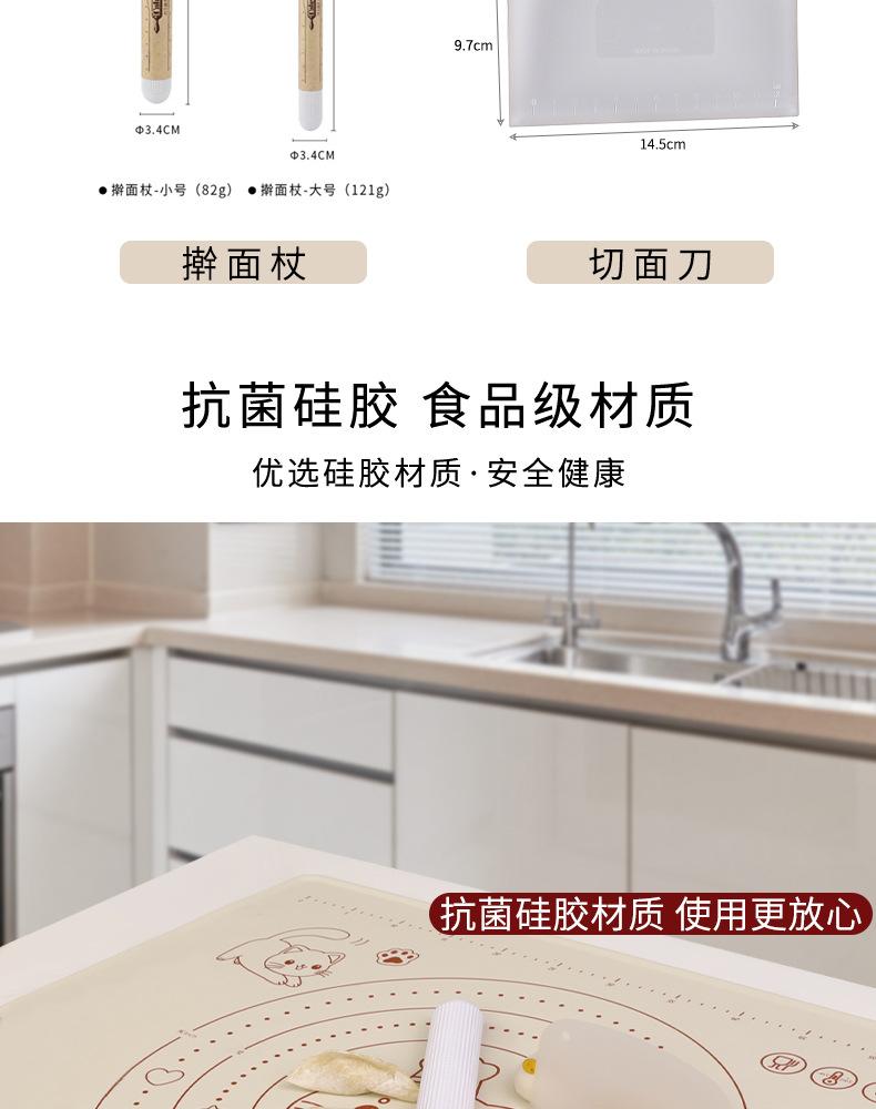 Antibacterial kneading mat (beige), White scraper (can be hung), Large rolling pin, Small rolling pin