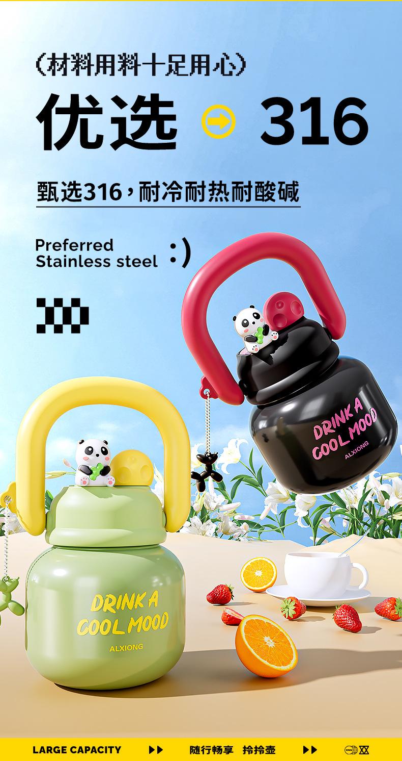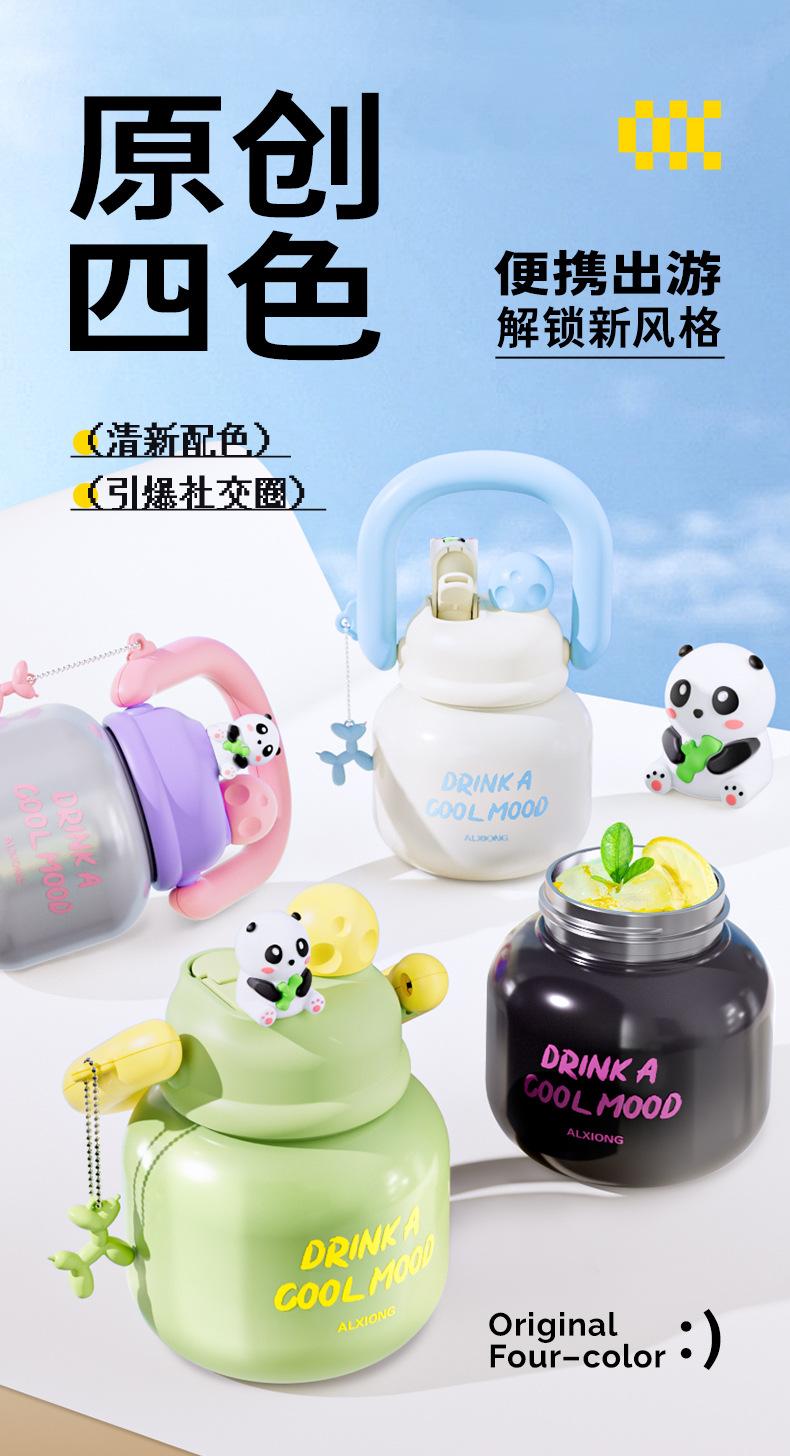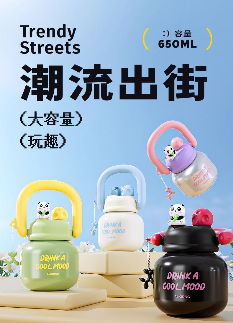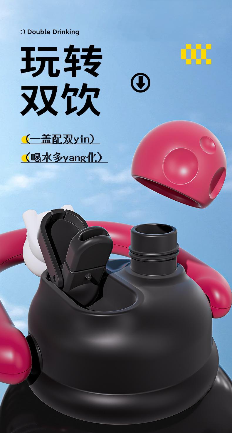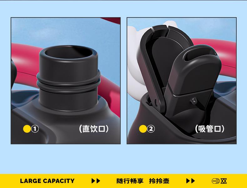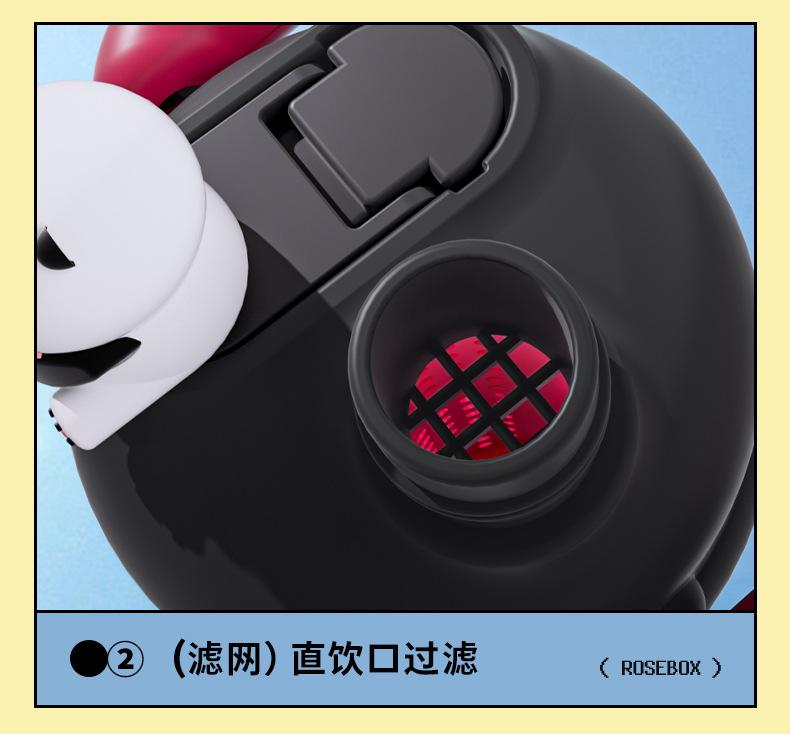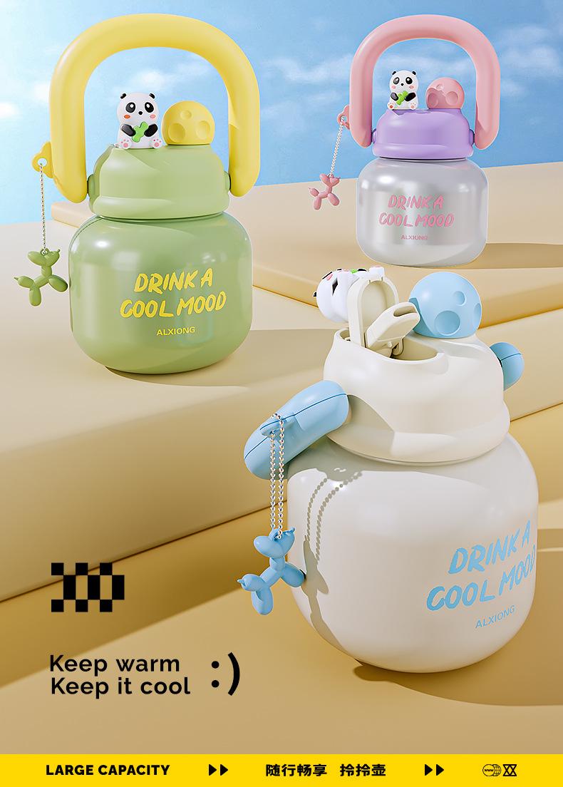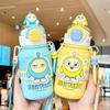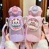 Termo de doble bebida con forma de barriga para niños y niñas de dibujos animados de aspecto alto, lindo vaso portátil con pajita y asa