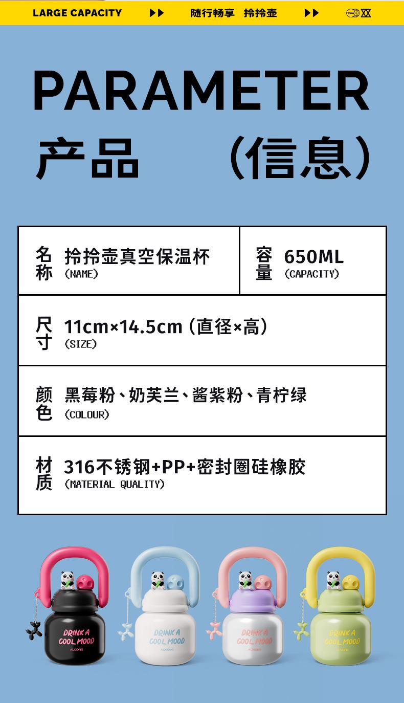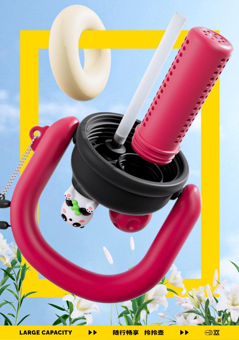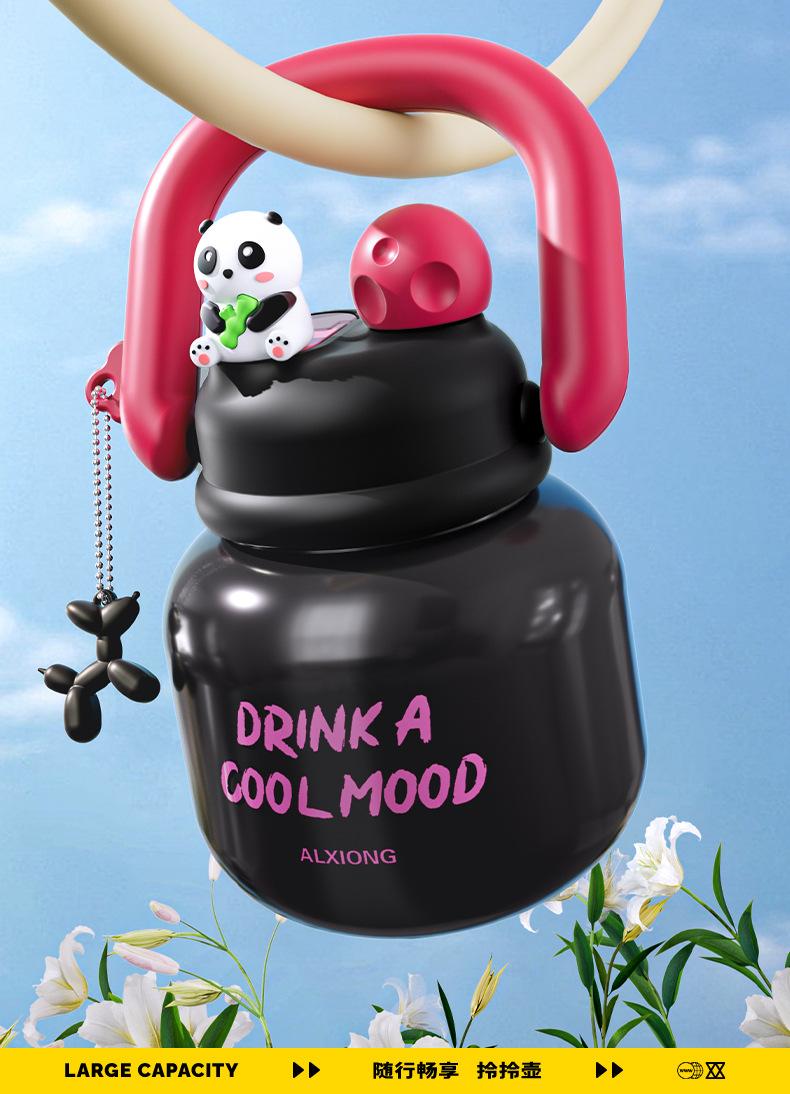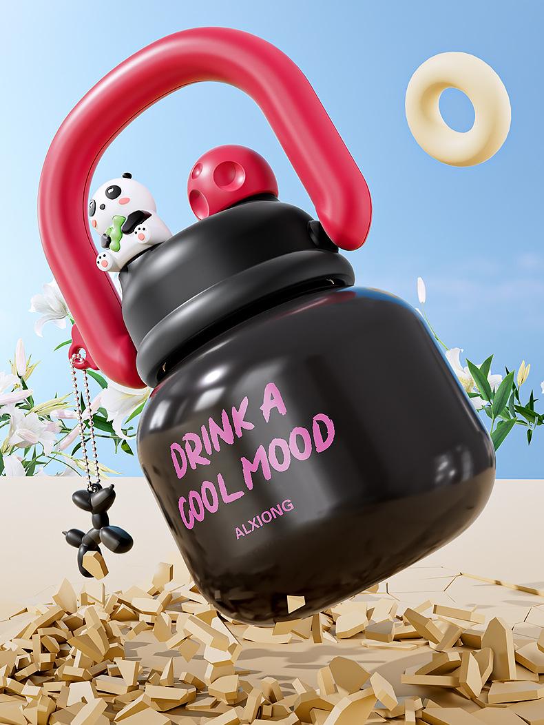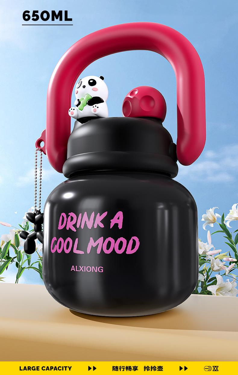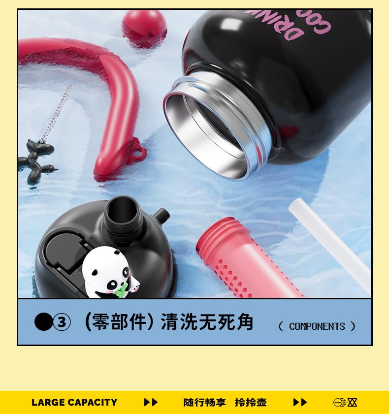 Termo de doble bebida con forma de barriga para niños y niñas de dibujos animados de aspecto alto, lindo vaso portátil con pajita y asa