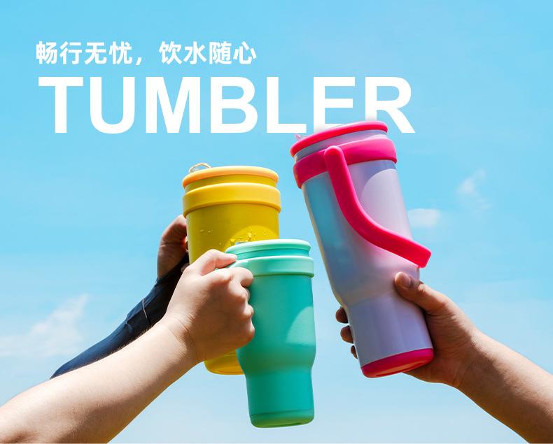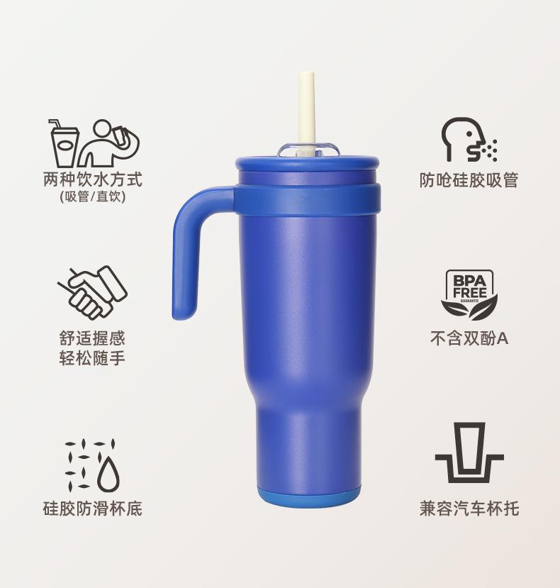 Nueva taza de hielo de acero inoxidable de doble capa transfronteriza, taza para coche al aire libre con pajita, taza térmica portátil, venta al por mayor