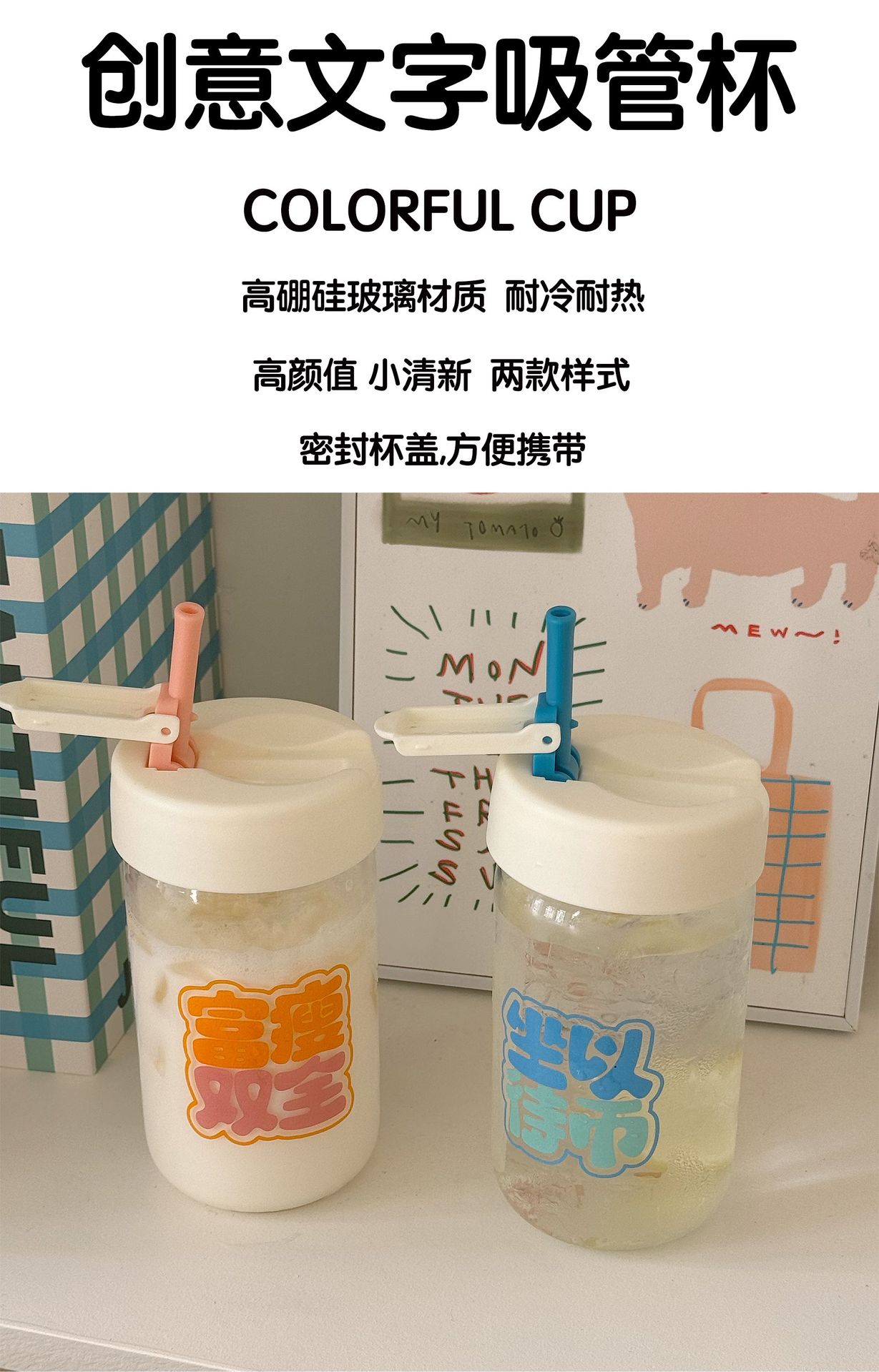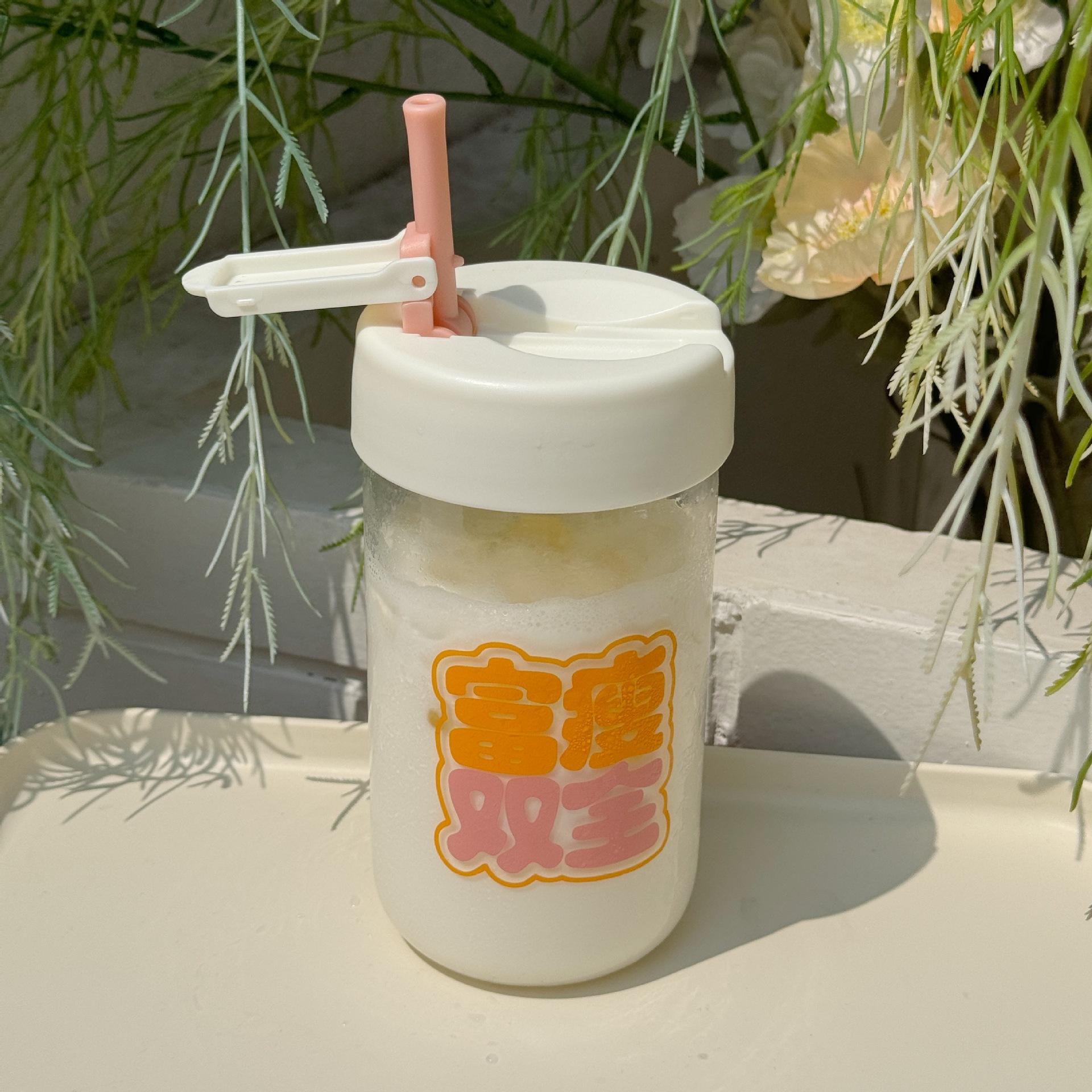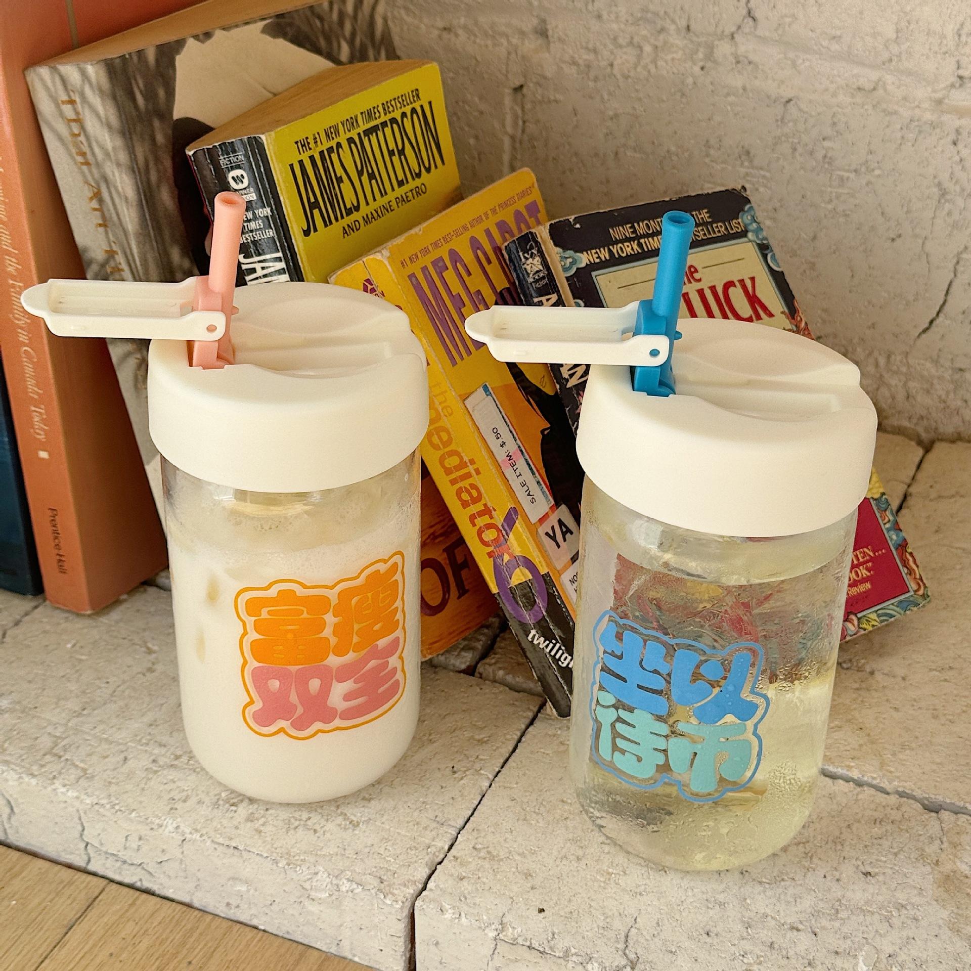 Nueva taza de agua portátil, taza de vidrio rojo de red, taza para estudiantes, linda taza de agua sellada a prueba de fugas, vidrio creativo
