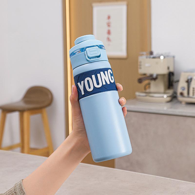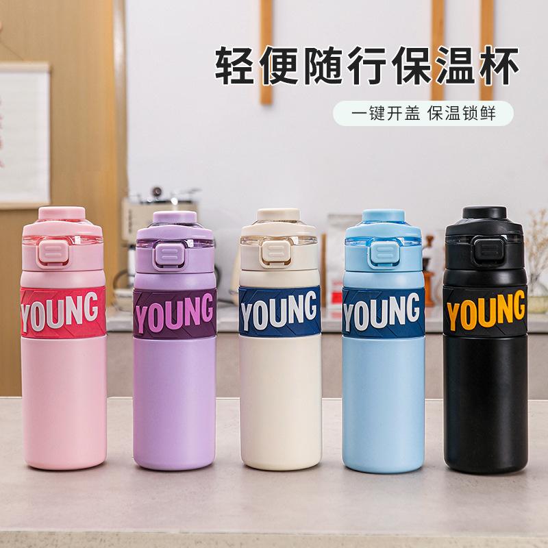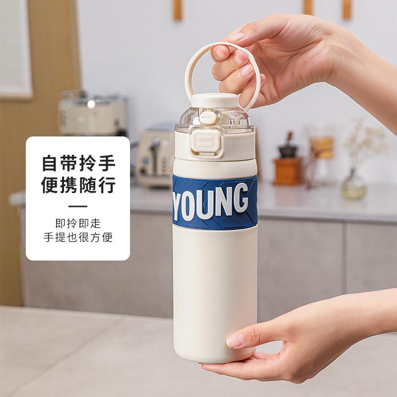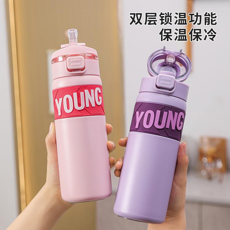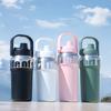 Termo de acero inoxidable de gran capacidad, simple, portátil, para deportes al aire libre, con pajita, para agua, nuevo, de alto valor en color.