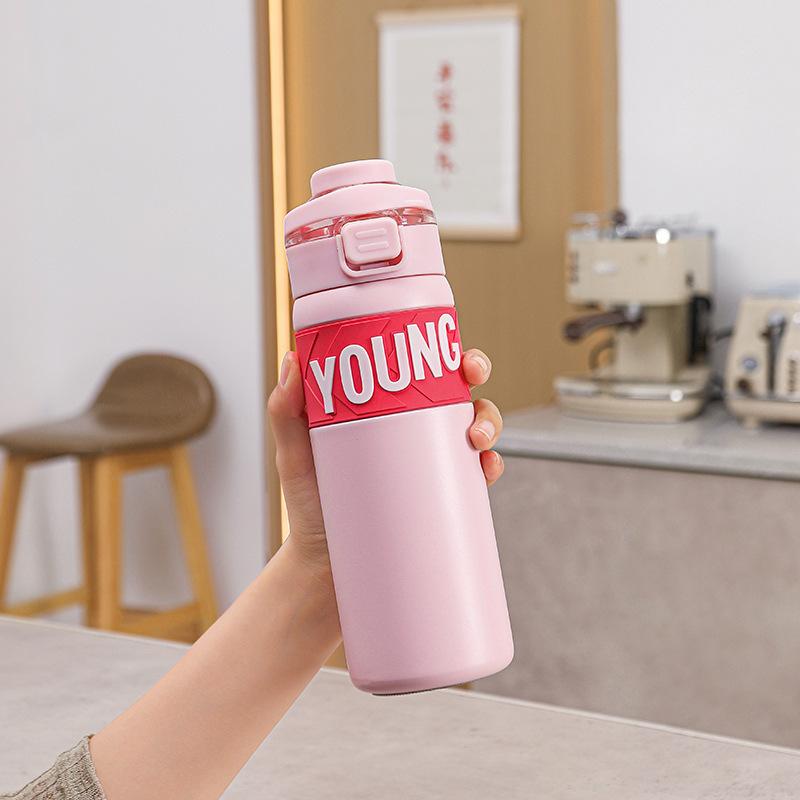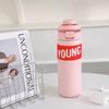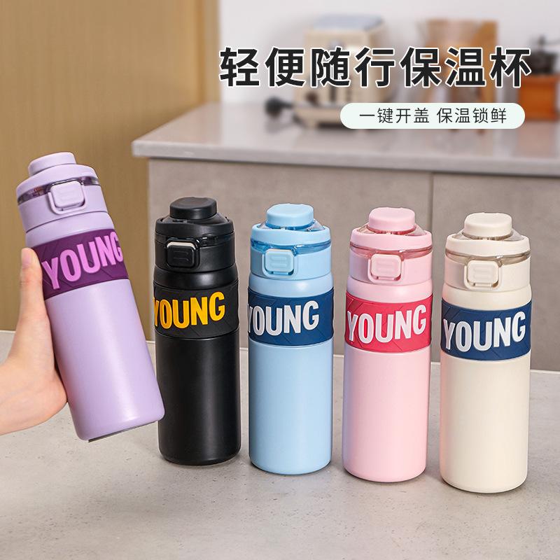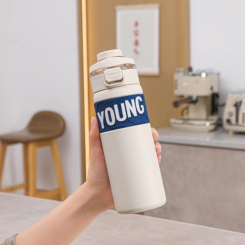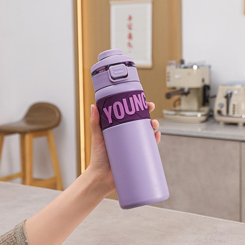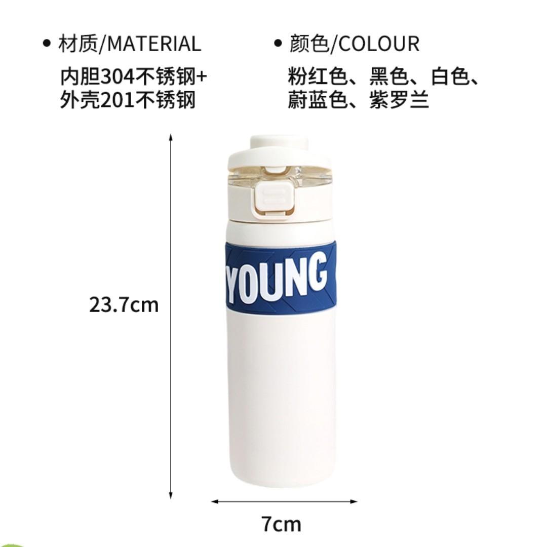 Termo de acero inoxidable de gran capacidad, simple, portátil, para deportes al aire libre, con pajita, para agua, nuevo, de alto valor en color.