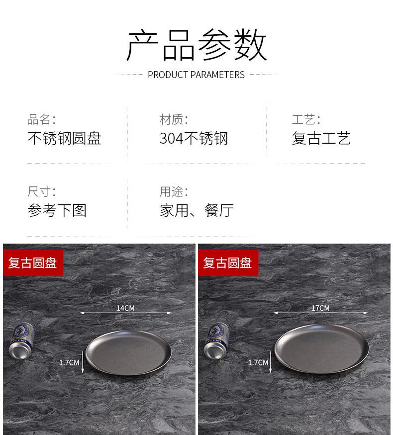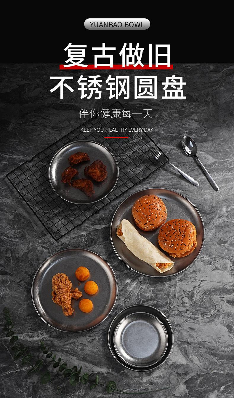 Restaurante de Barbacoa Hogar Acero Inoxidable Comercial Plato para Comedor Plato de Acero Inoxidable Plato Redondo Plato para Huesos Plato para Comida Occidental Bandeja Estilo Coreano