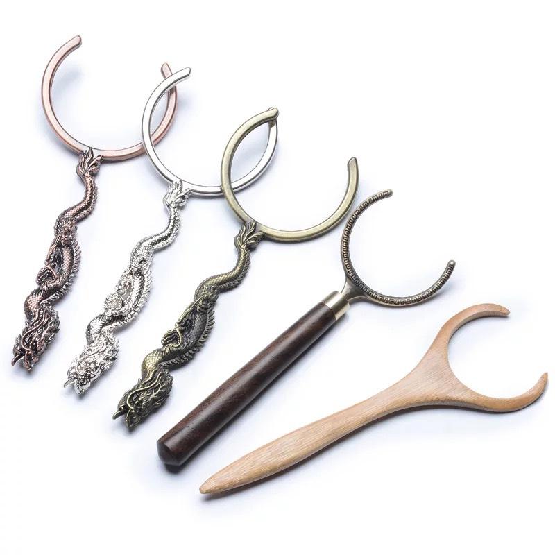 Mango de ébano tetera de hierro de cobre tenedor tetera de hierro fundido japonesa tenedor para tetera de bambú tapa de tetera de hierro viejo clip para tapa de tetera de vidrio tapa de tetera tenedor para tetera