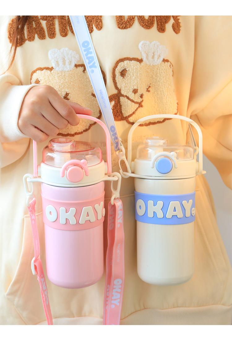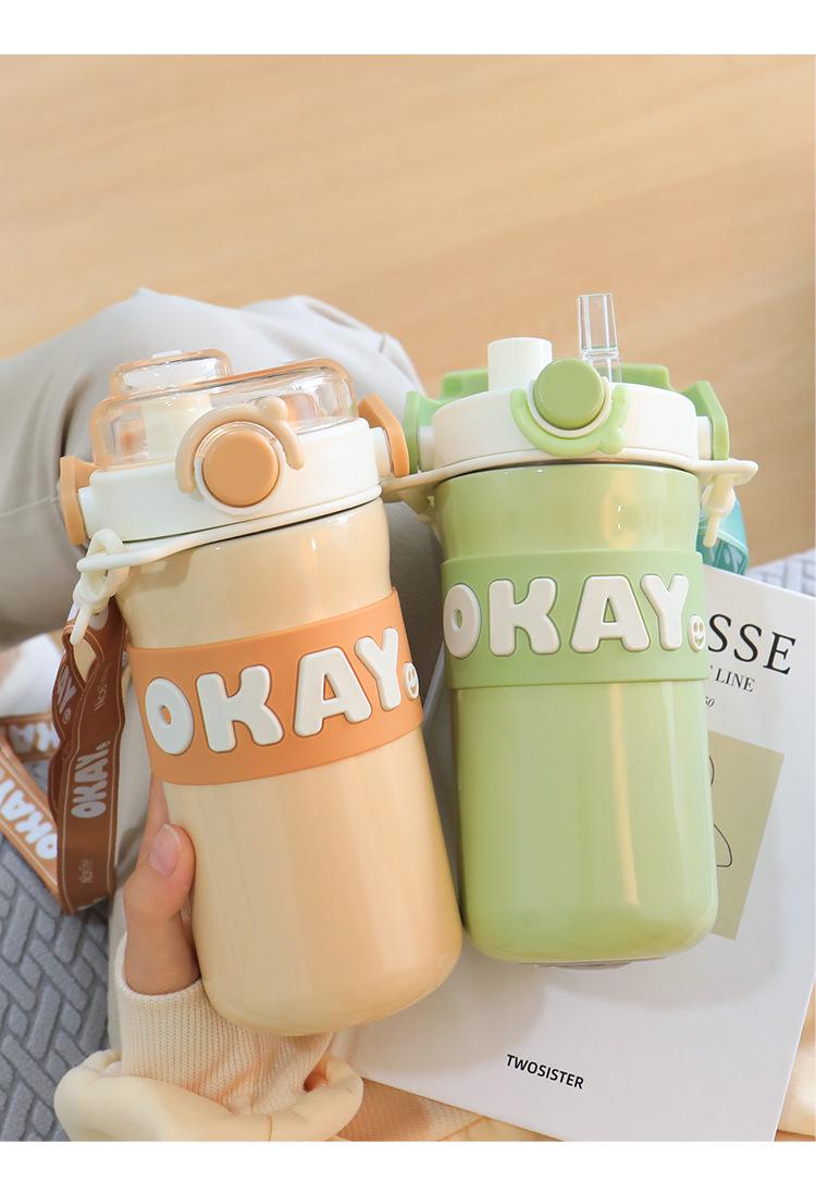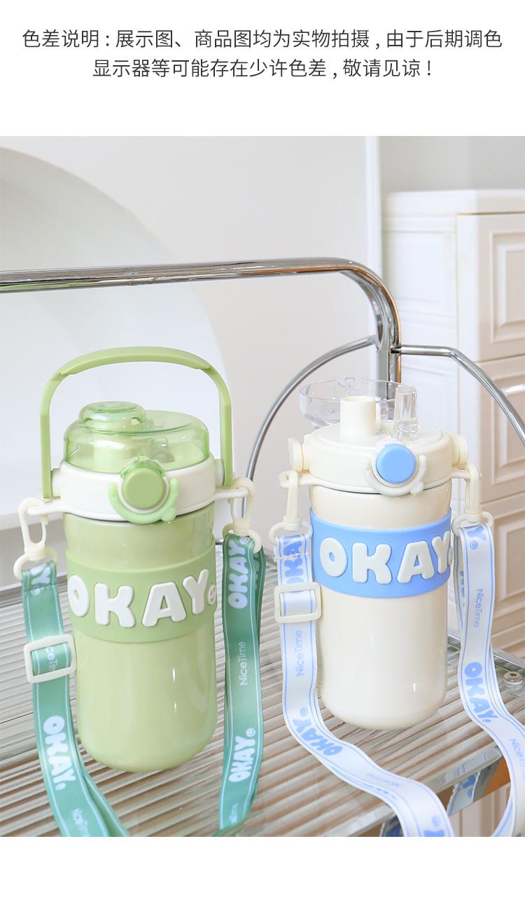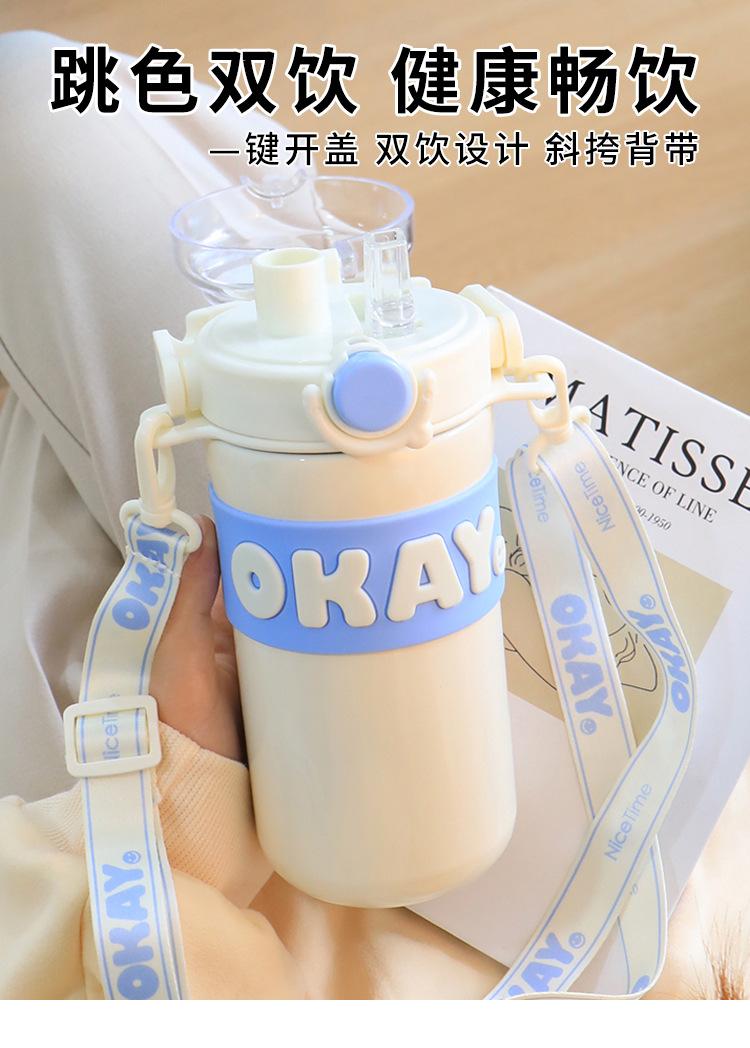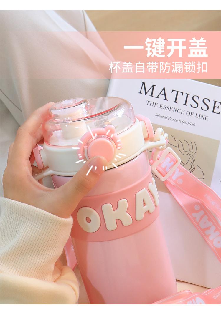 Termo de agua para niñas, nuevo 2023, con ventosa de alto valor de color, gran capacidad, doble bebida para niños y estudiantes.