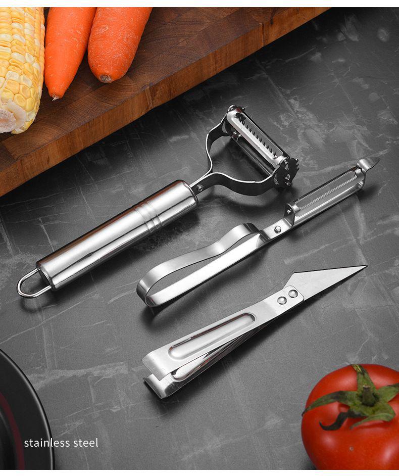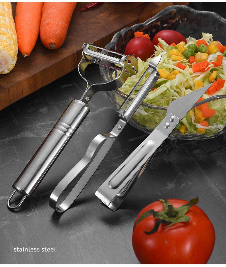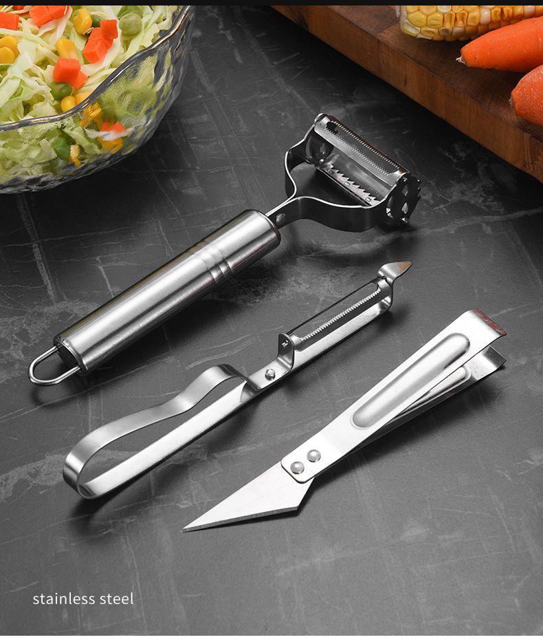 Cuchillo Pelador de Acero Inoxidable Juego de Tres Piezas Rallador de Verduras y Frutas Pelador de Papas Doméstico Herramienta Afilada Pelador