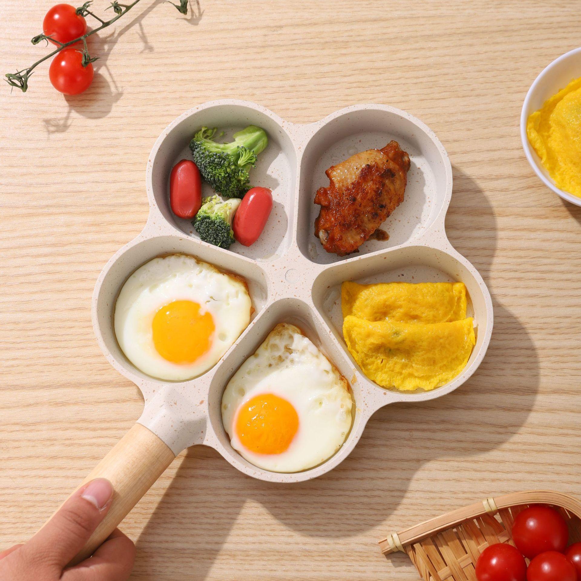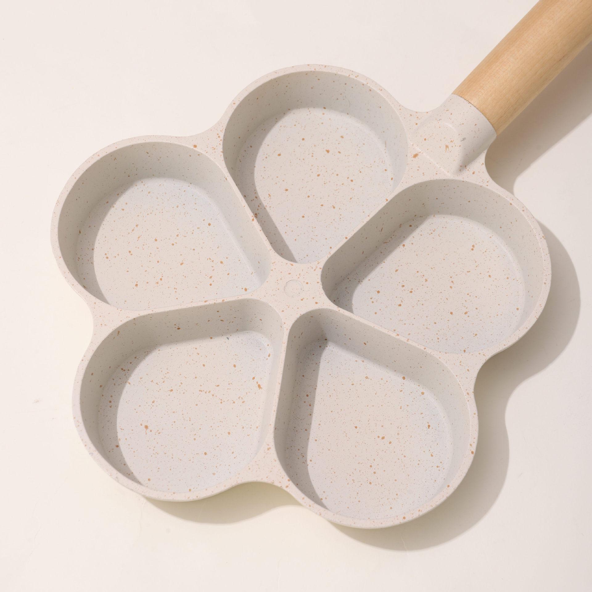 Sartén para Huevos de Cártamo Neto en Forma de Flor de Piedra Maifan de Cinco Hoyos Sartén Universal Antiadherente para Cocina de Inducción Fondo Plano Sartén para Desayuno